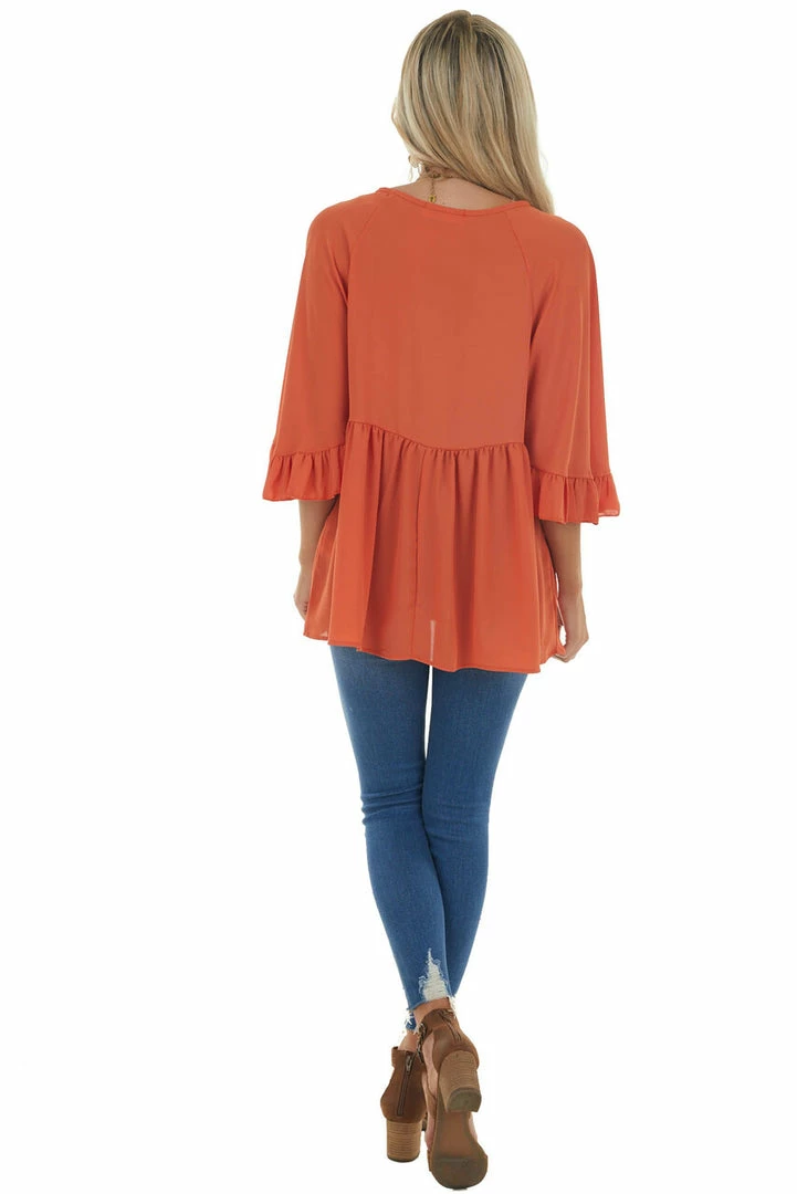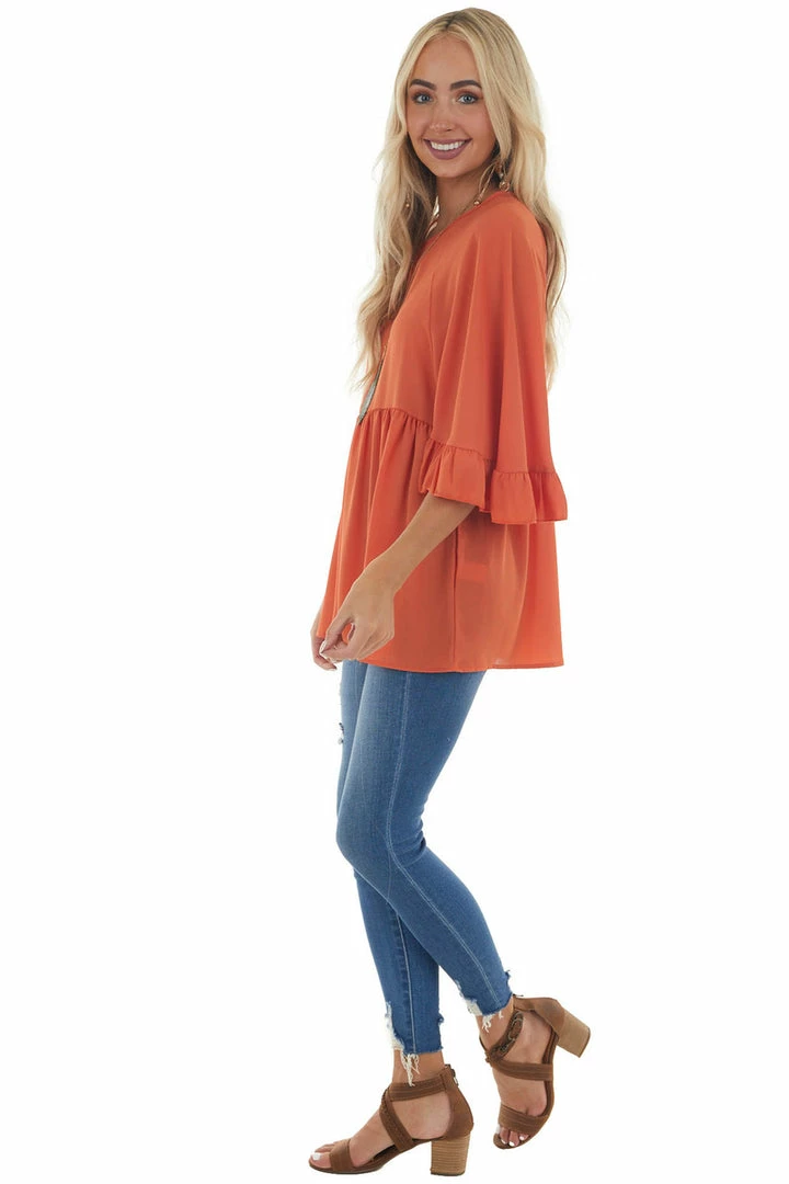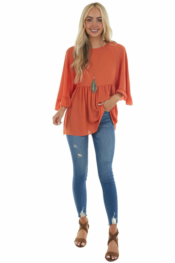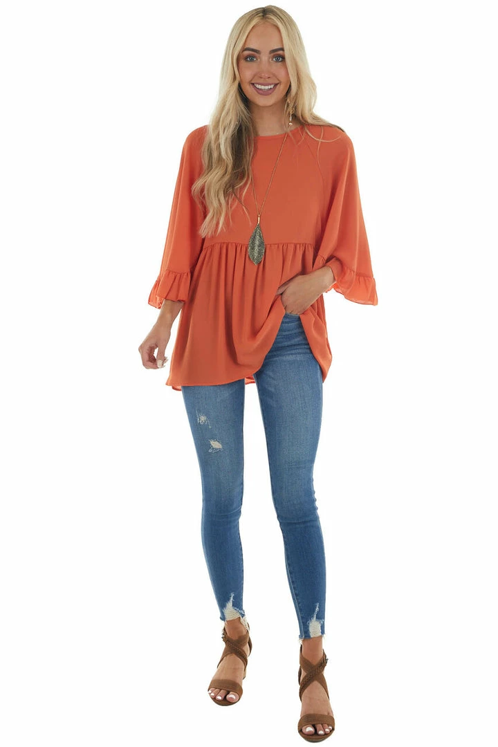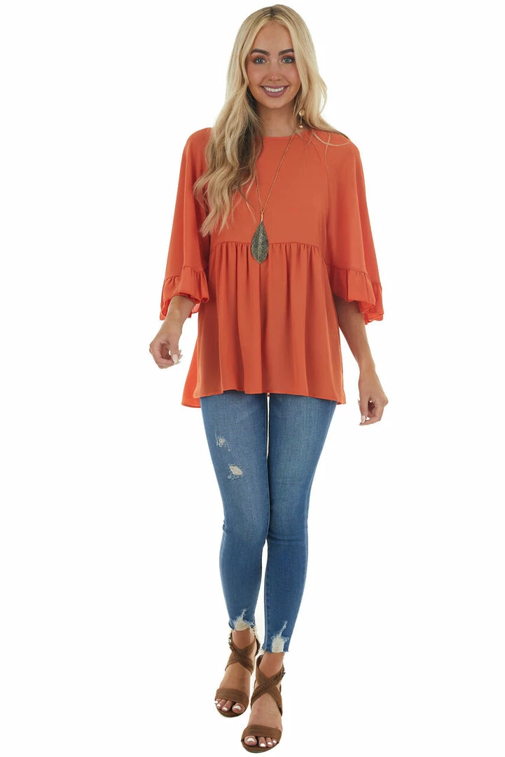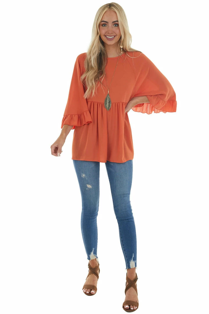 - Pumpkin 3/4 Flare Sleeve Drop Waist Blouse