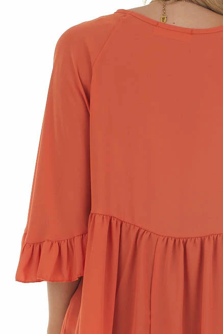 - 3/4 raglan batwing flare sleeves with flowy ruffle trim