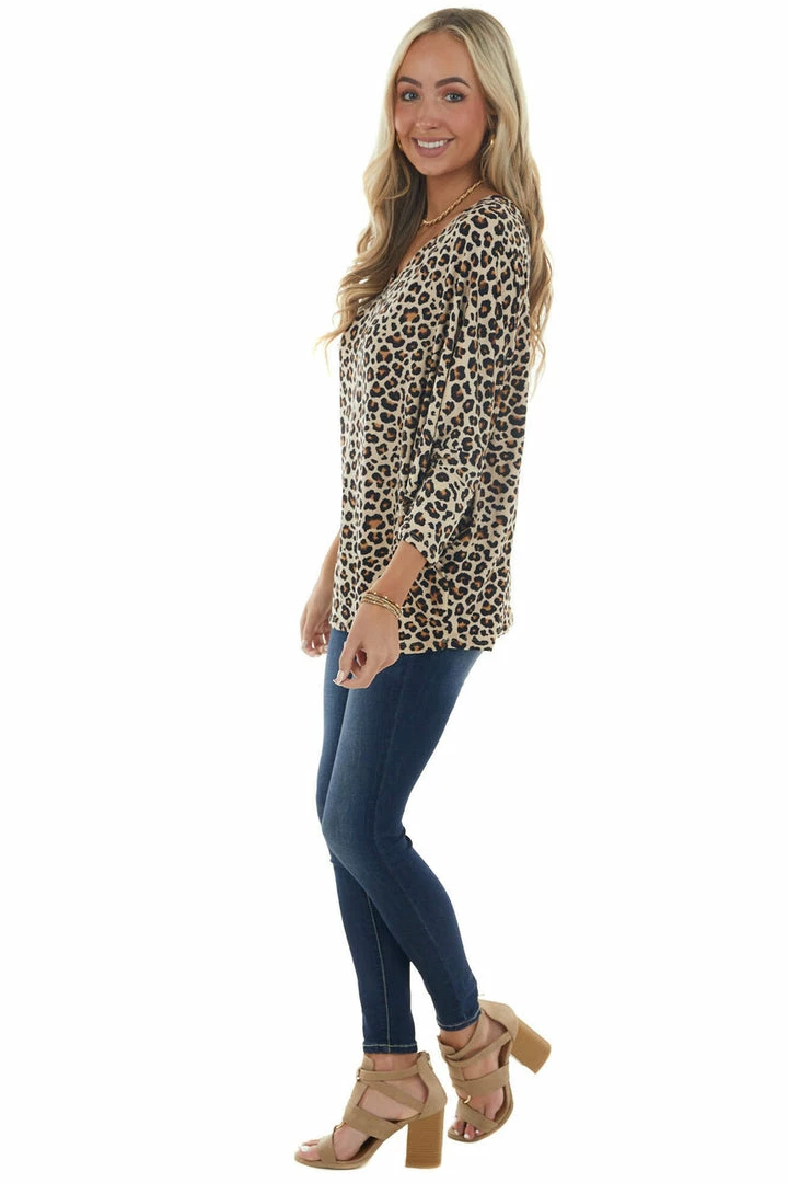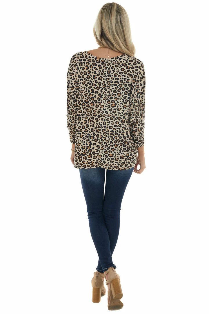 - Light Beige Leopard Slouchy Dolman Sleeve Top