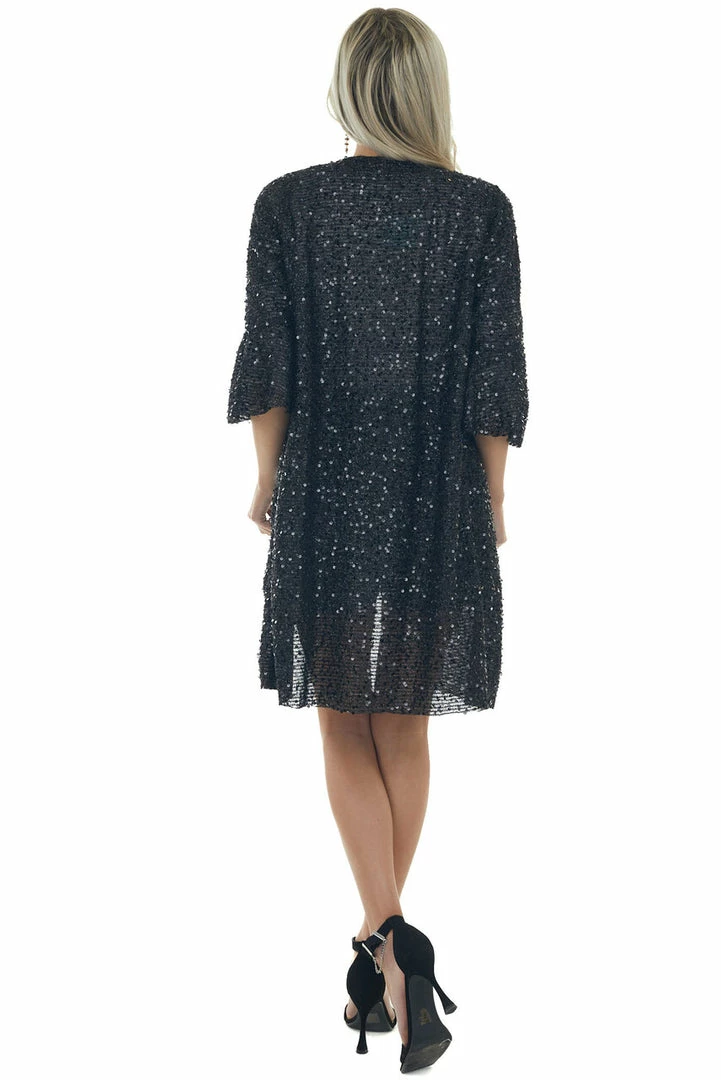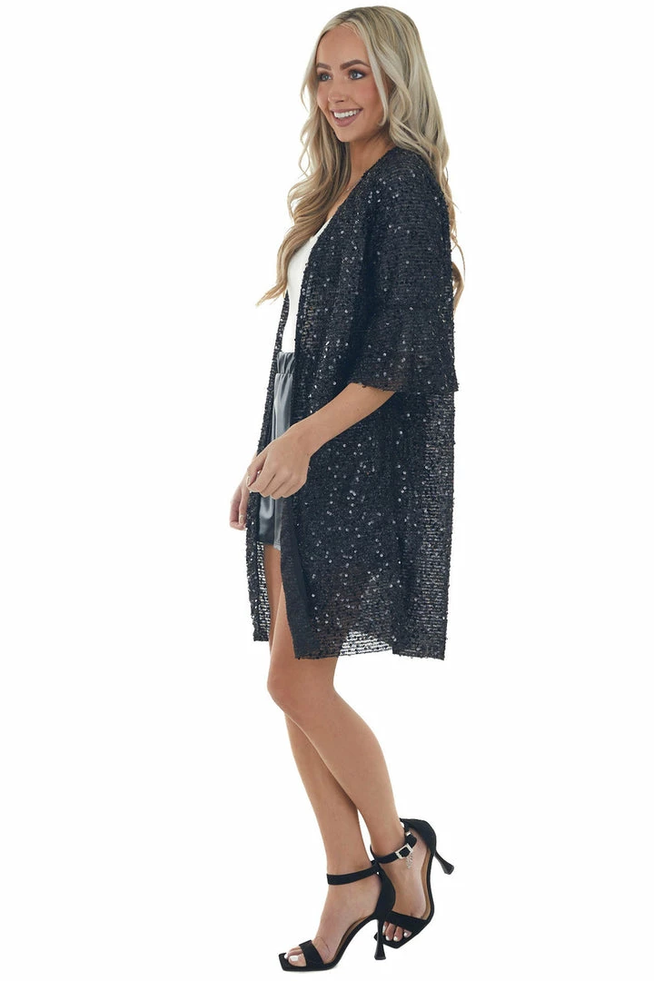 - Black Shimmery Sequin Bell Sleeve Woven Kimono