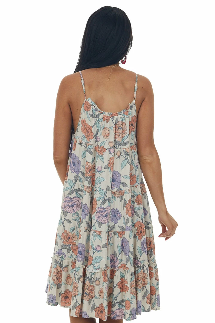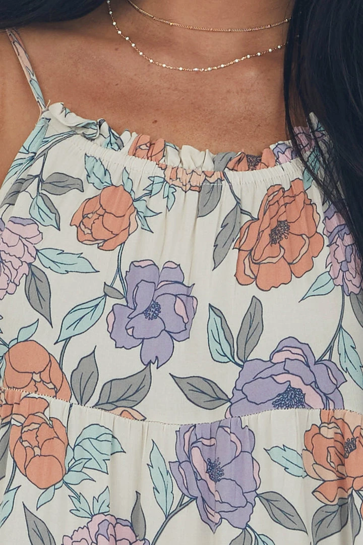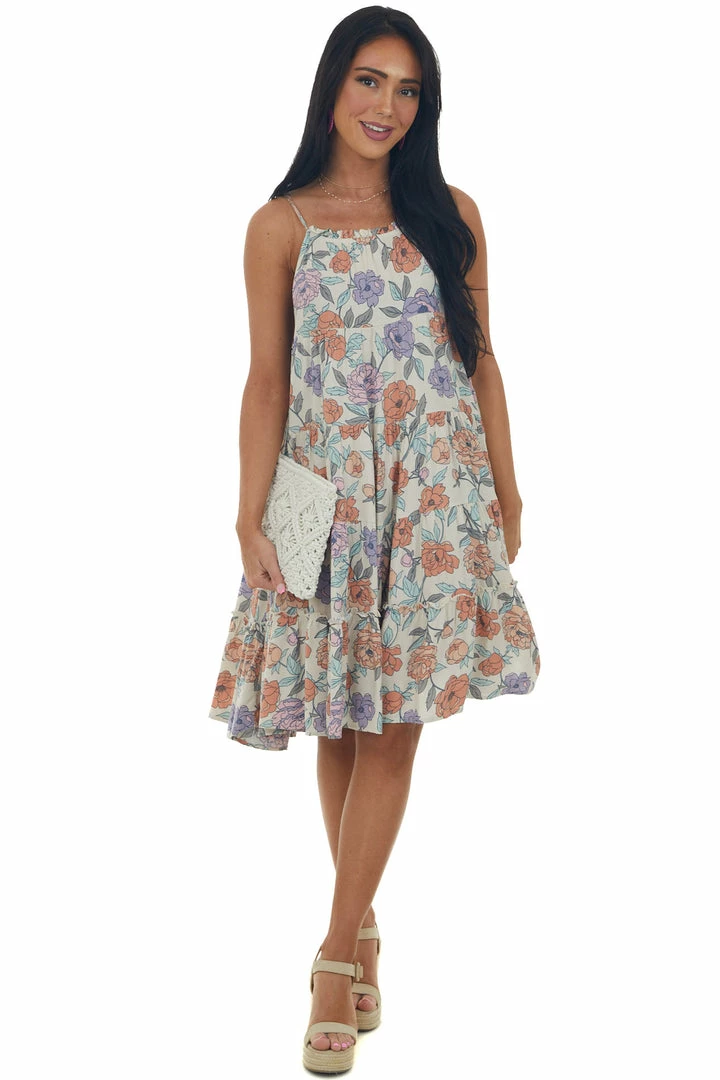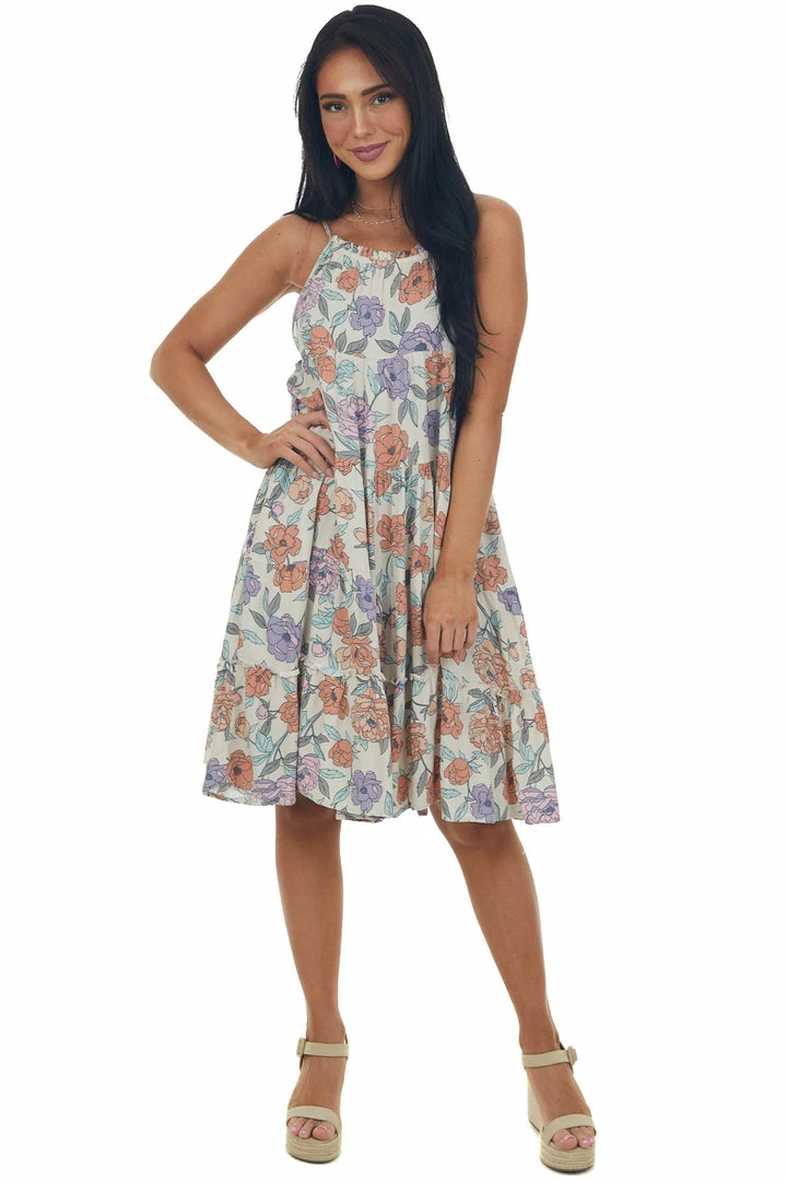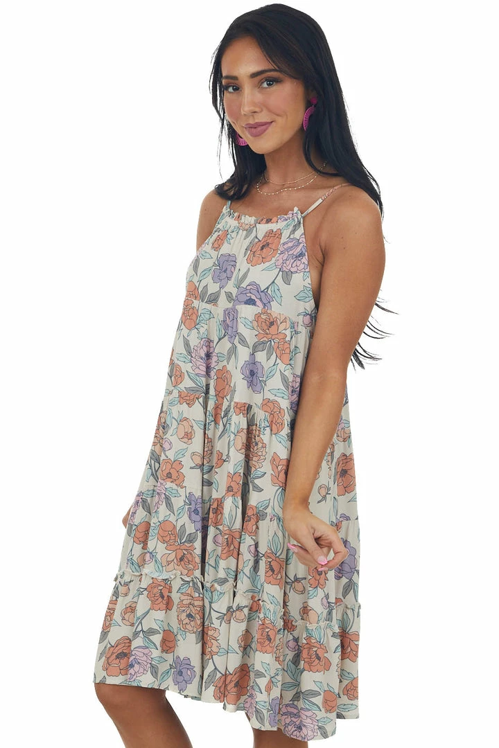 - Coconut Floral Print Halter Woven Babydoll Dress