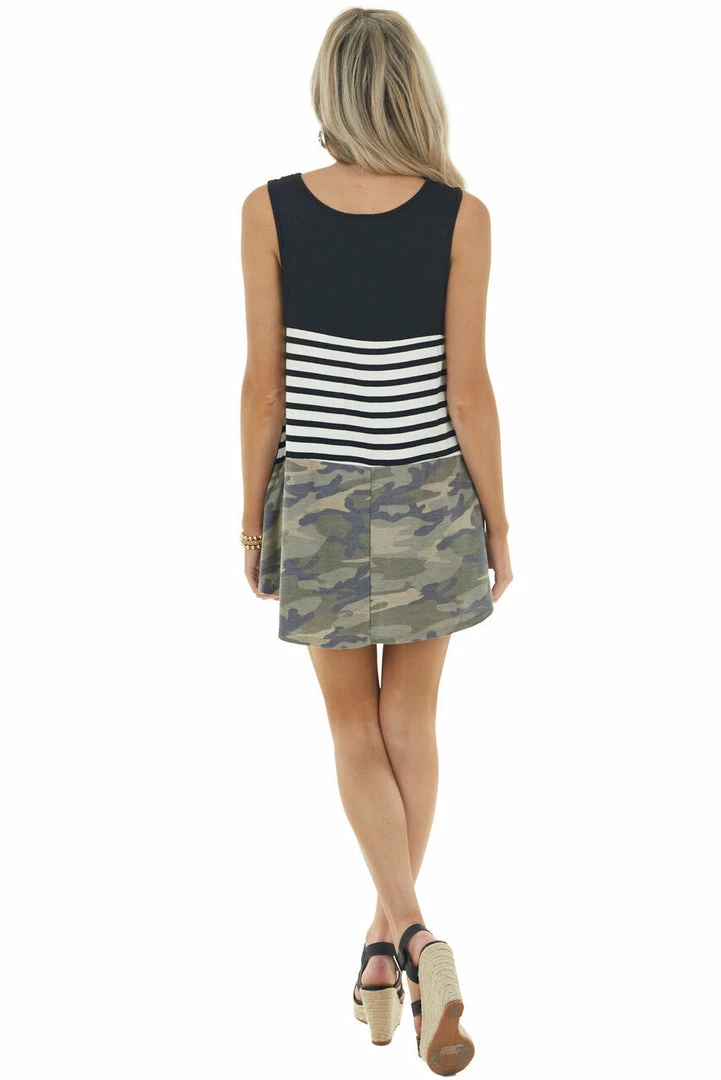 - Black Camo and Stripe Colorblock Knit Tunic Tank Top
