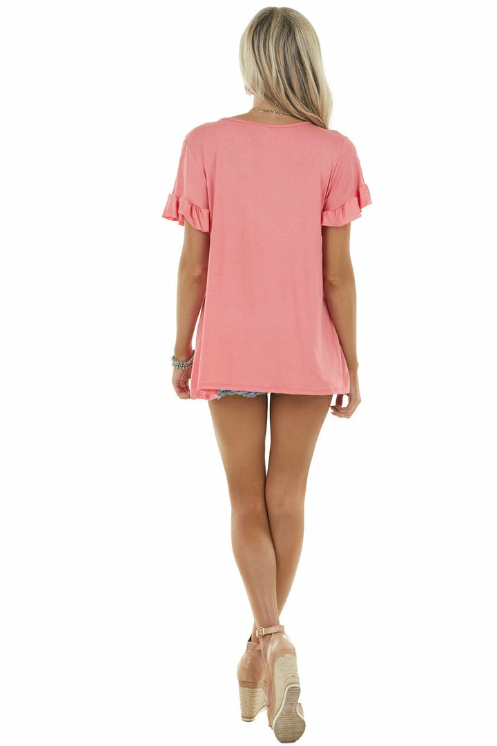 - Coral Babydoll V Neck Knit Top with Short Sleeves