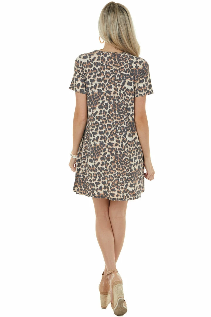 - Beige Leopard Print Dress with Button Detail
