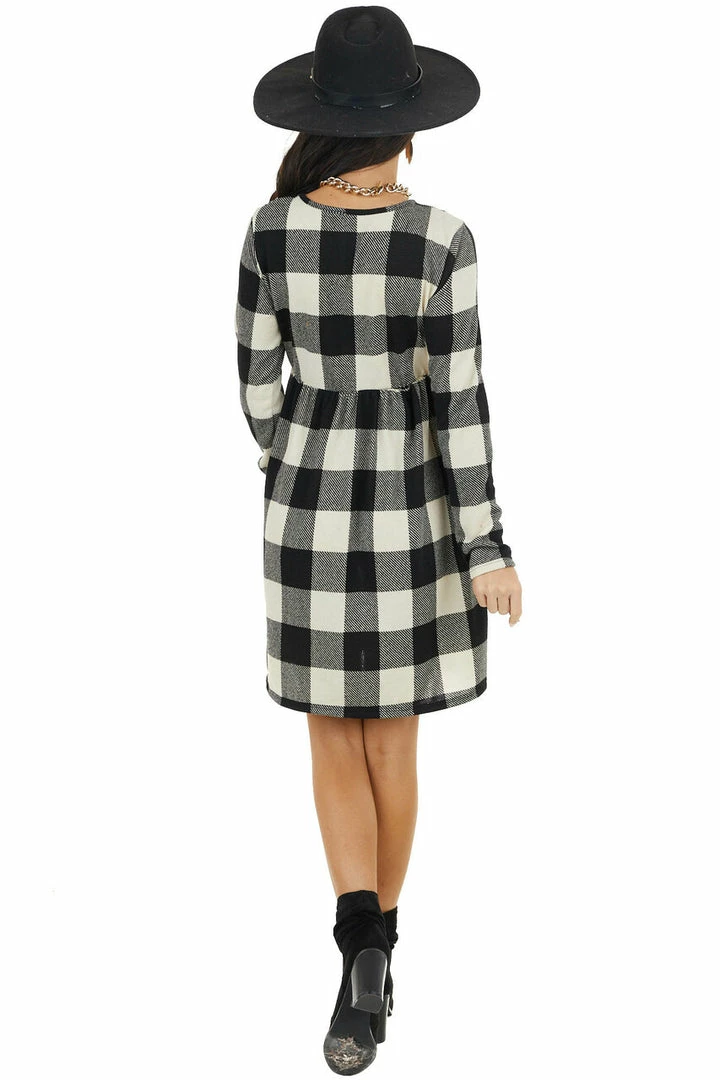 - Black and Ivory Buffalo Plaid BabyDoll Dress with Pockets