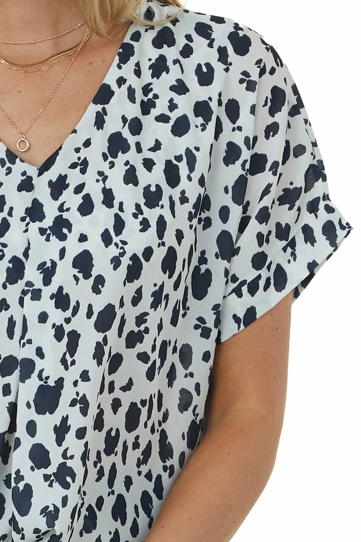 - Coconut and Black Animal Print Short Sleeve Blouse