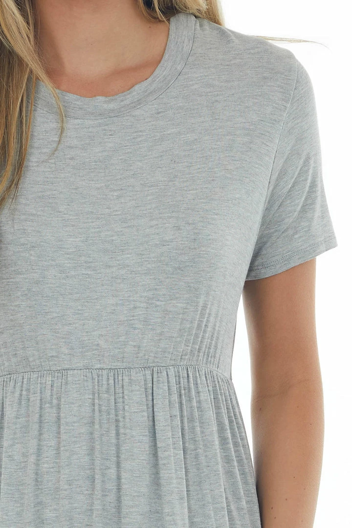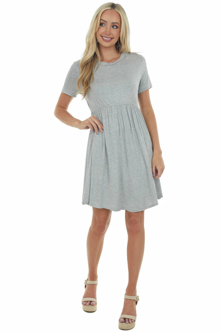 - Heather Grey Short Sleeve Babydoll Knit Dress