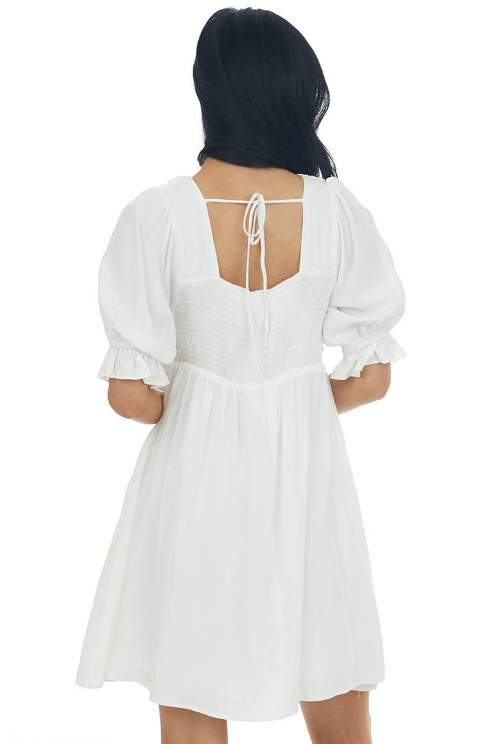 - Off White Crochet Bodice Short Sleeve Dress