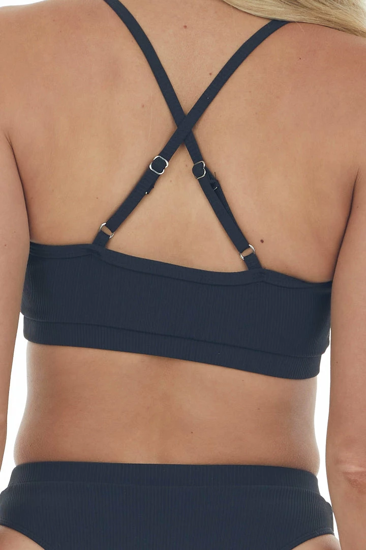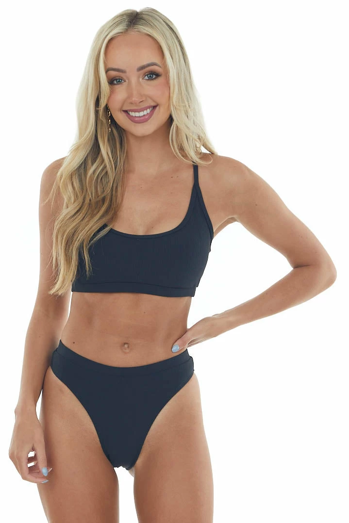 - Black High Leg Scoop Neck Ribbed Bikini Set