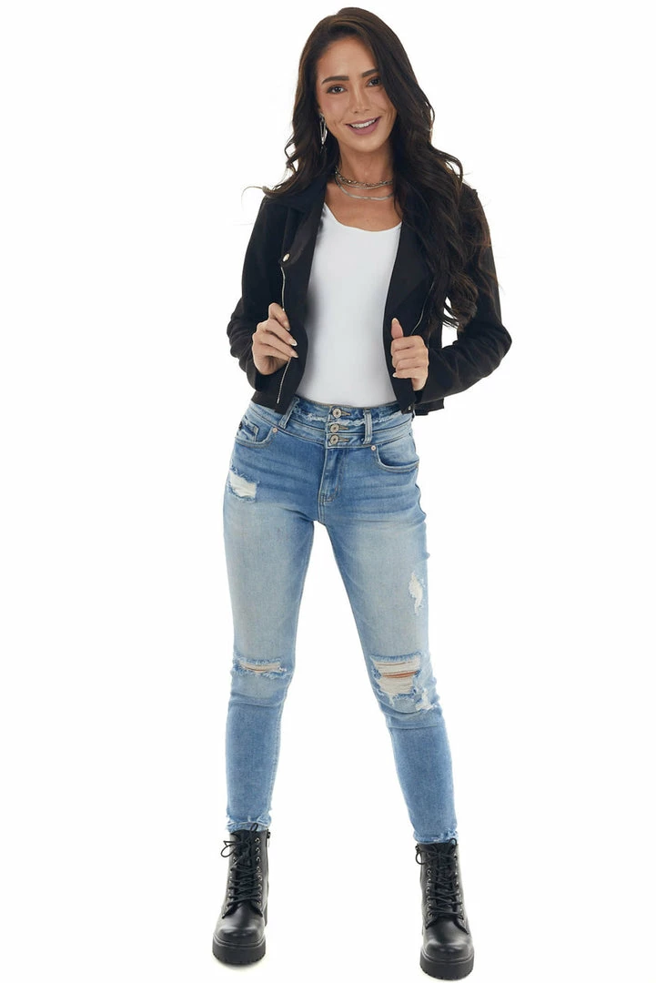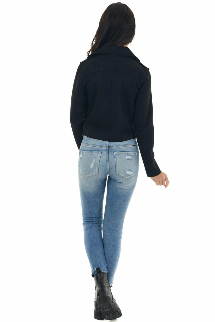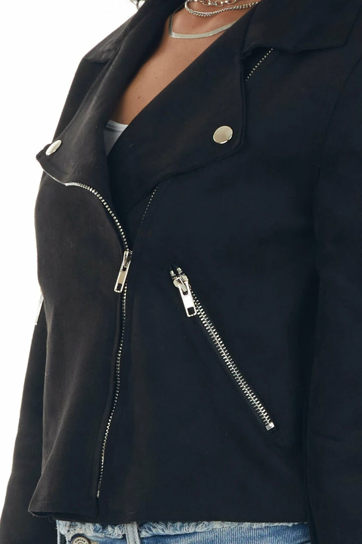 - Black Faux Suede Double Lapel Fashion Moto Jacket