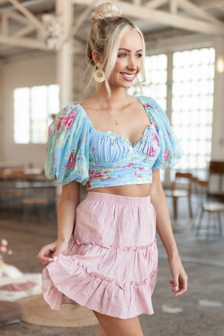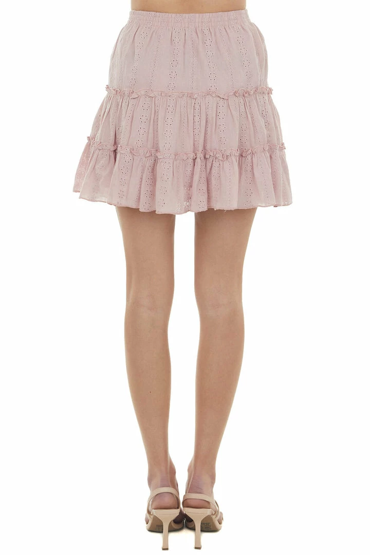 - Dusty Blush Eyelet Lace Tiered Short Skirt