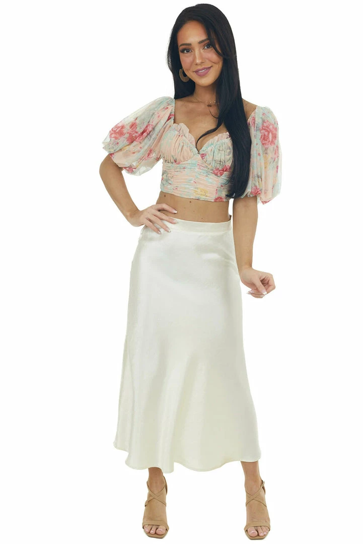 - Champagne A-Line Satin Woven Midi Skirt