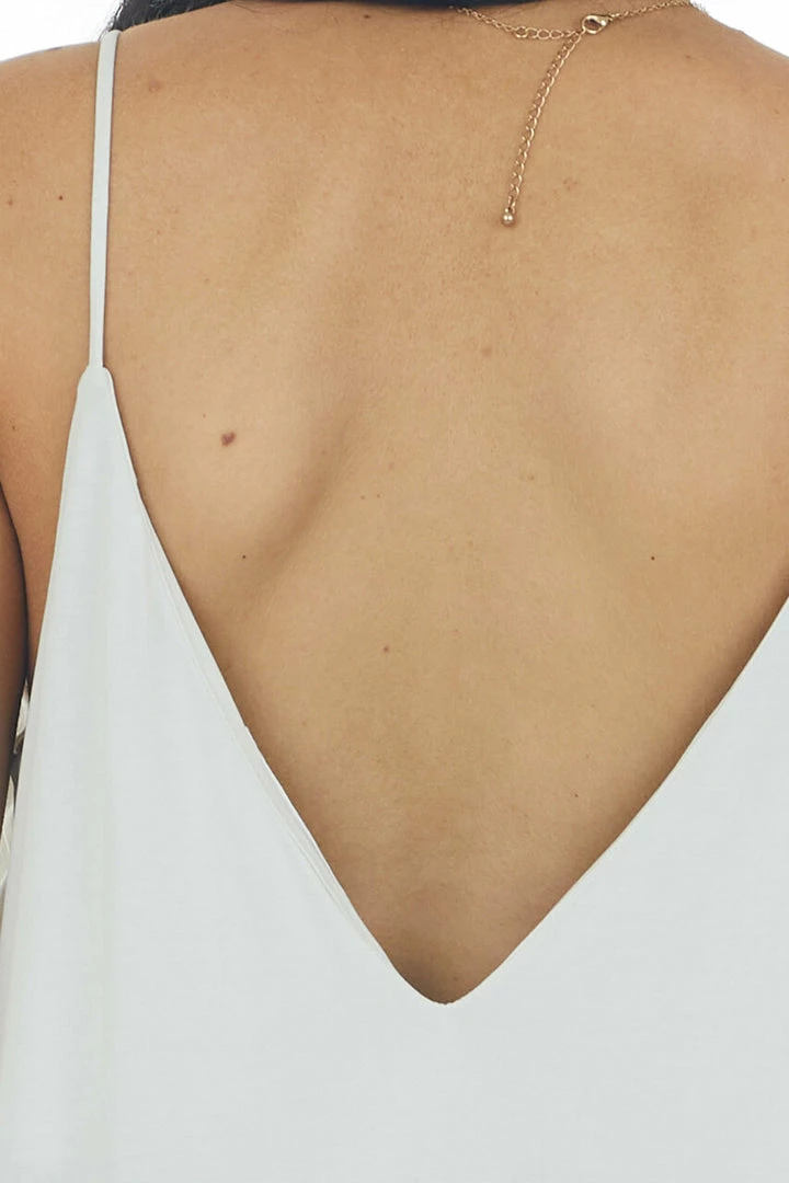 - Cloud Grey Flowy Knit Cami with V Neckline