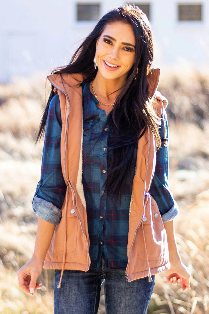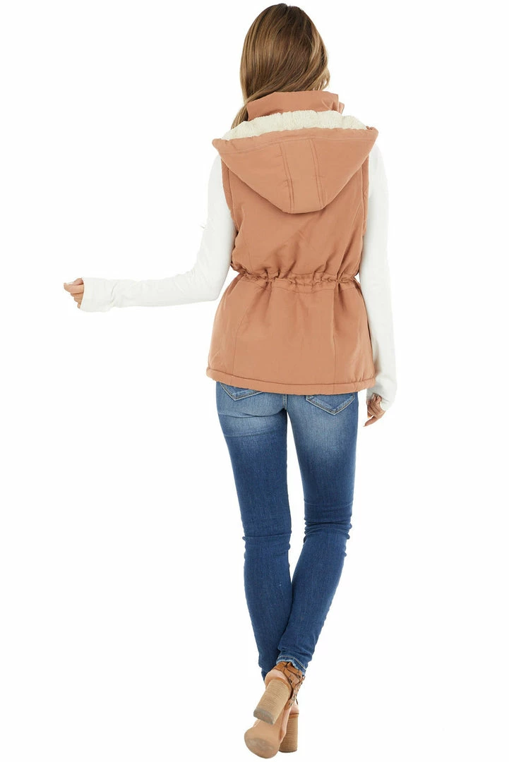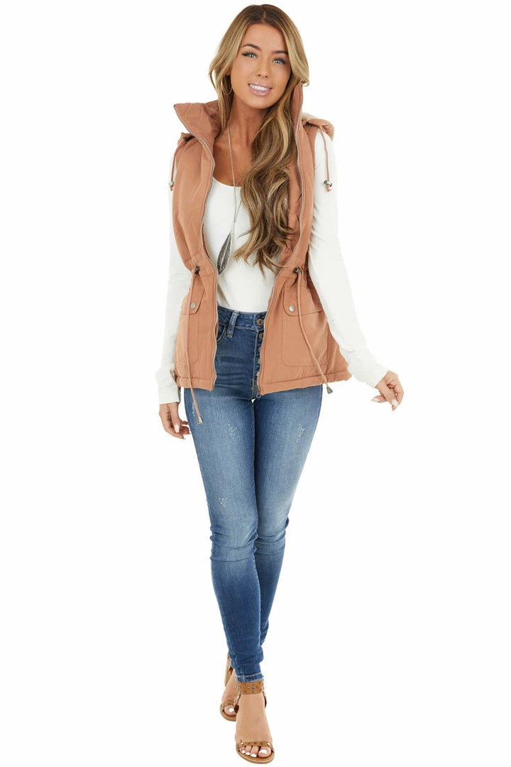 - Dusty Salmon Sleeveless Zip up Vest with Mock Neckline