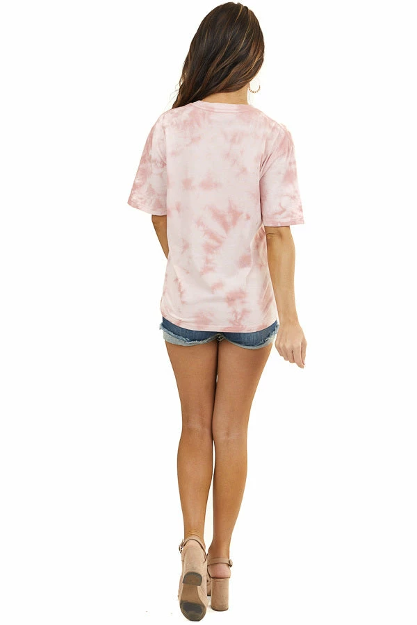 - Mauve Tie Dye Short Sleeve Knit T Shirt Top
