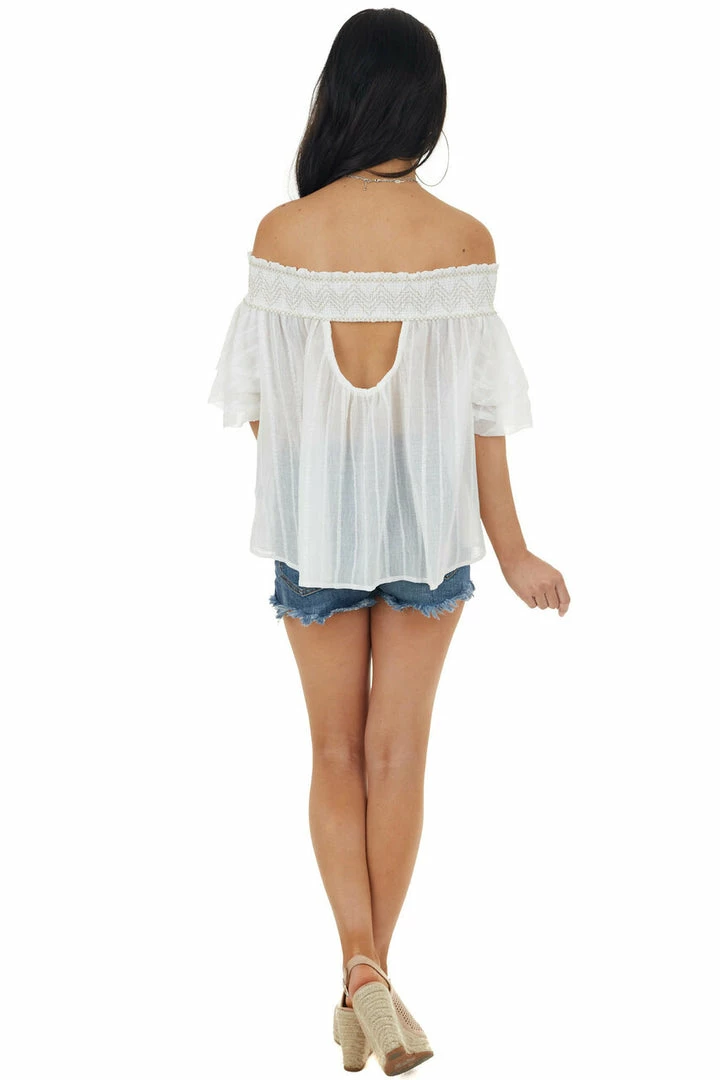 - Pearl and Beige Smocked Neckline Off the Shoulder Blouse