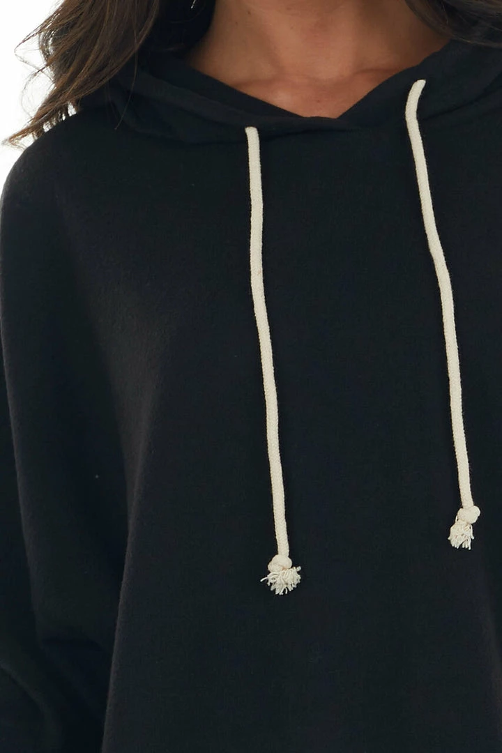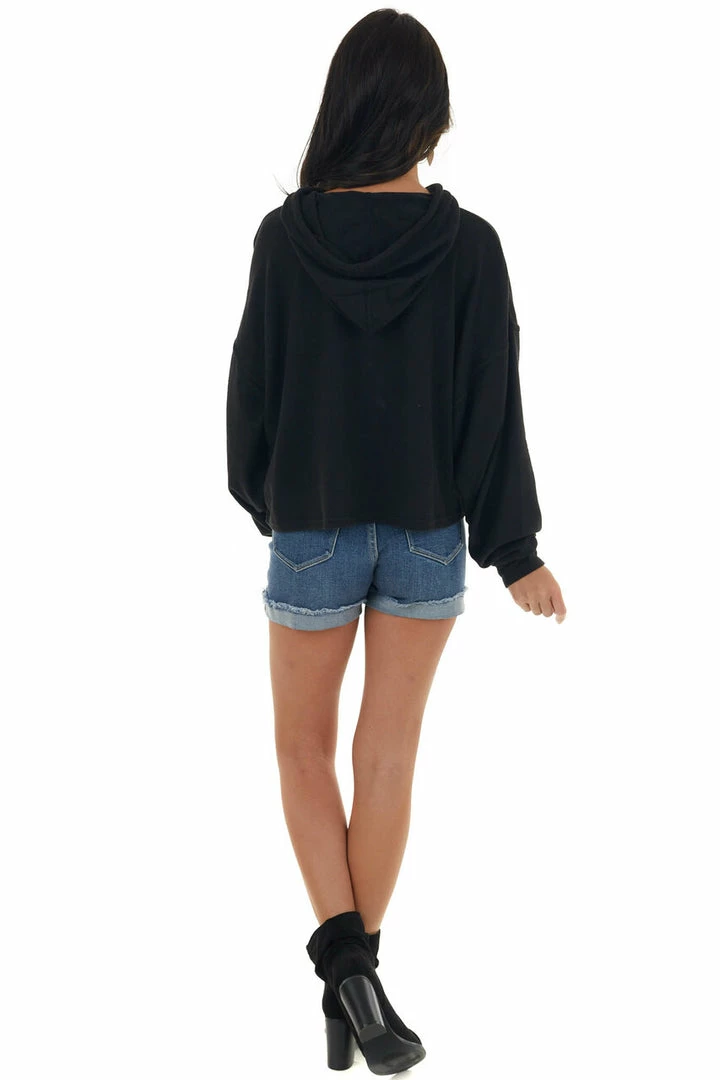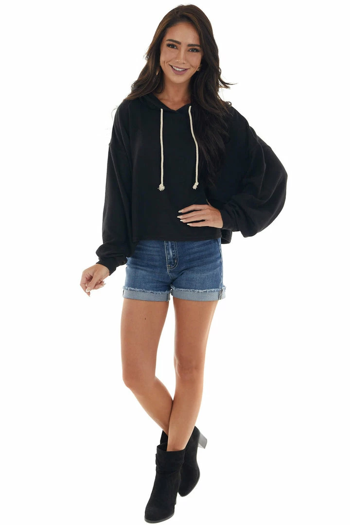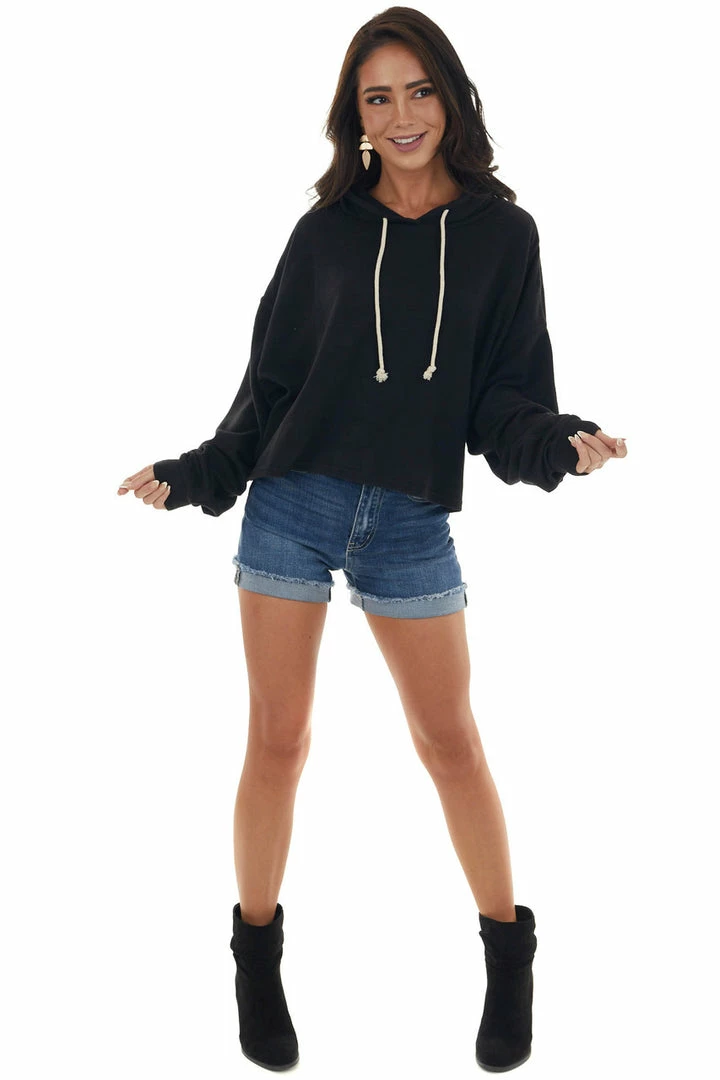 - Black Soft Cropped Drawstring Hoodie