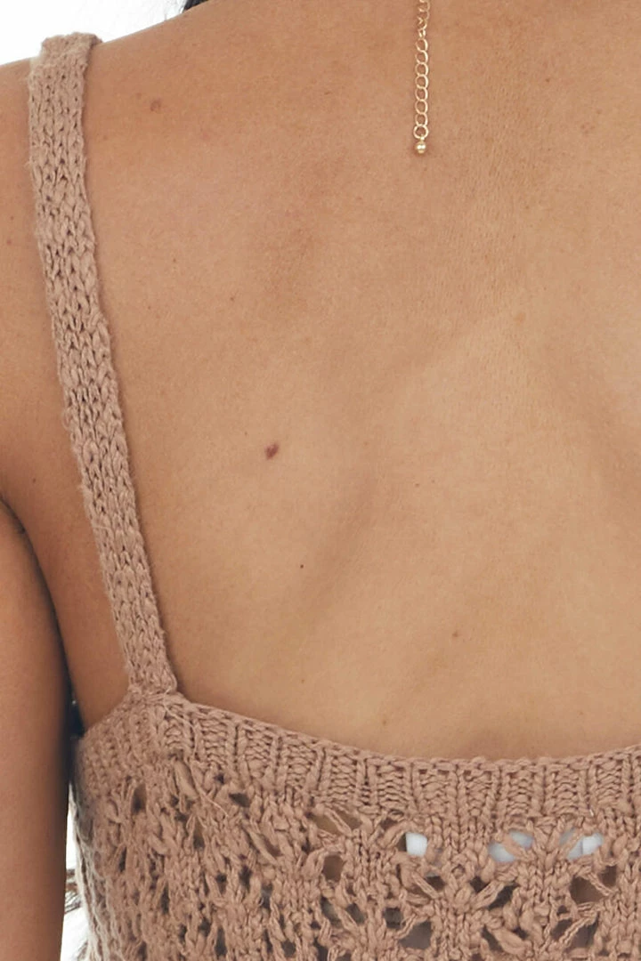- Coffee Sleeveless Ribbed Hem Crochet Knit Top