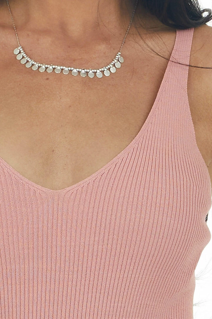 - Coral V Neck Lightweight Ribbed Knit Tank Top