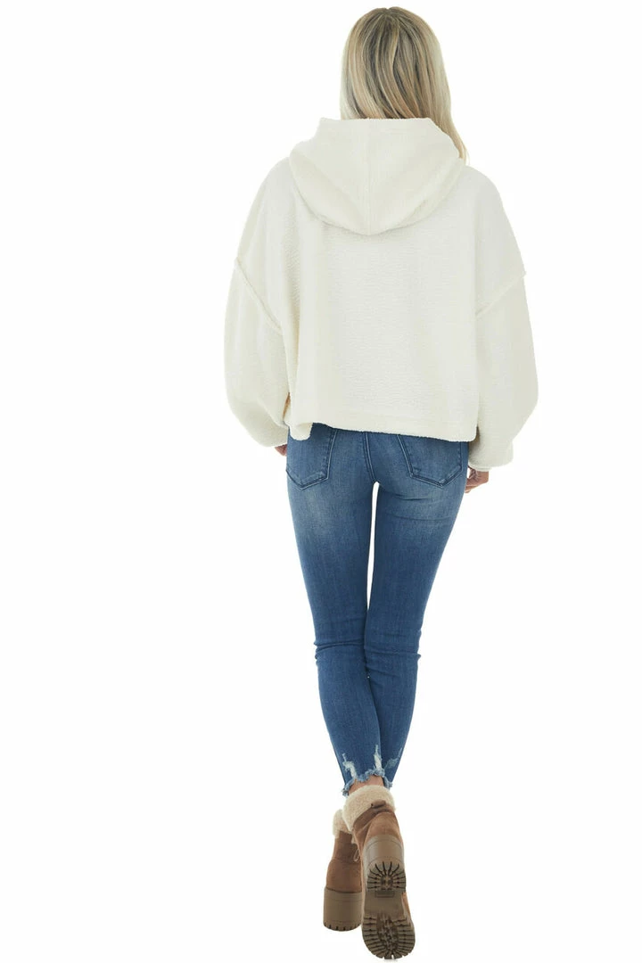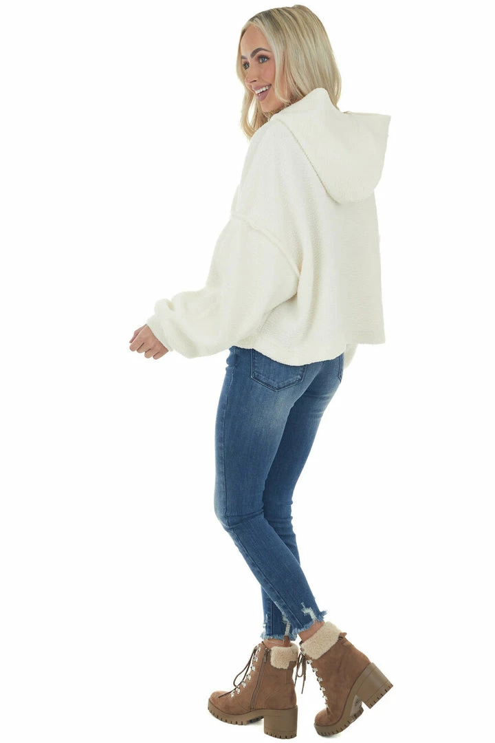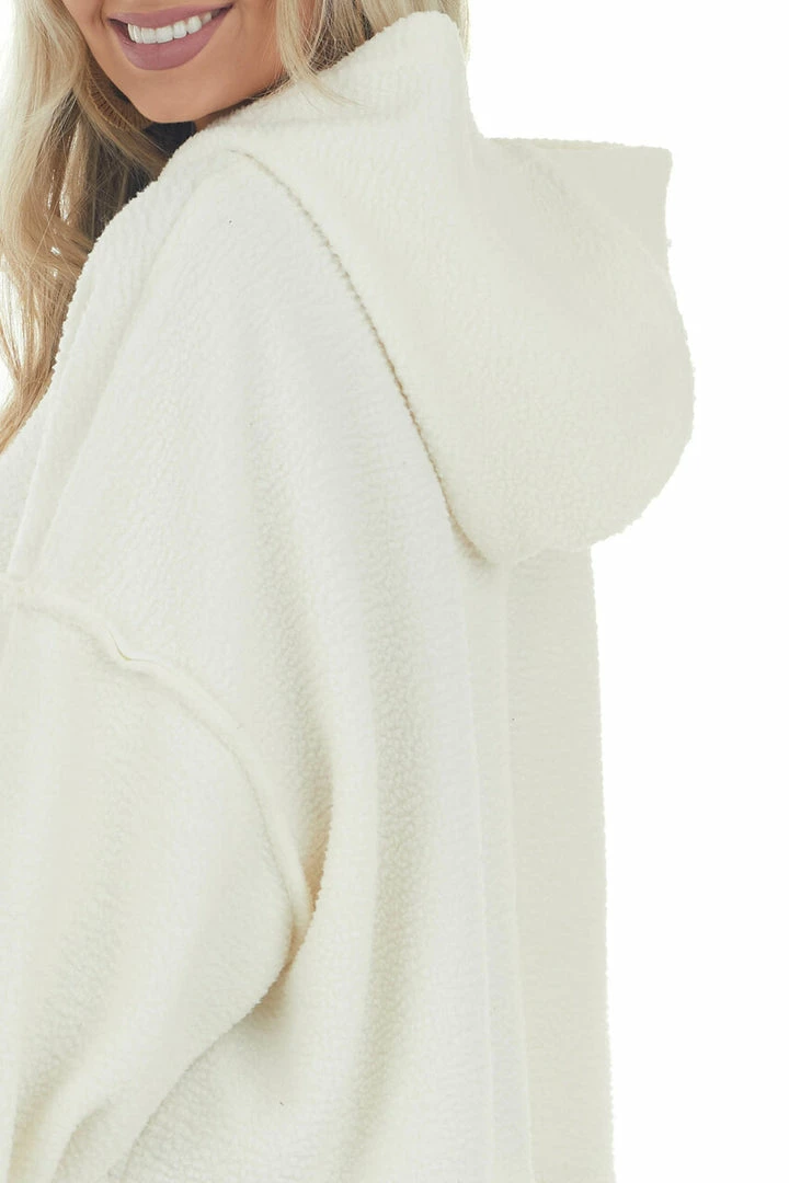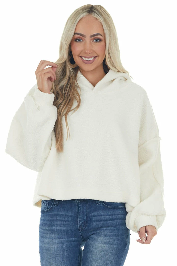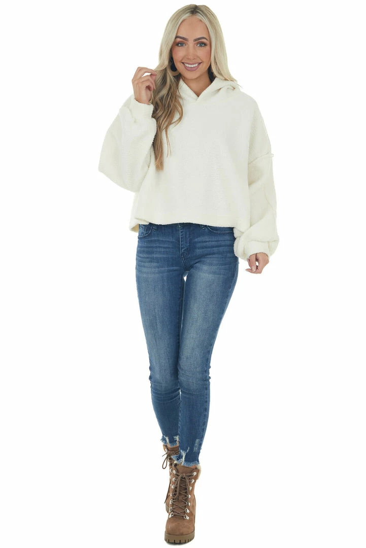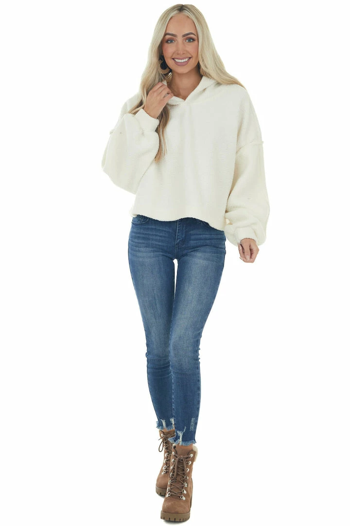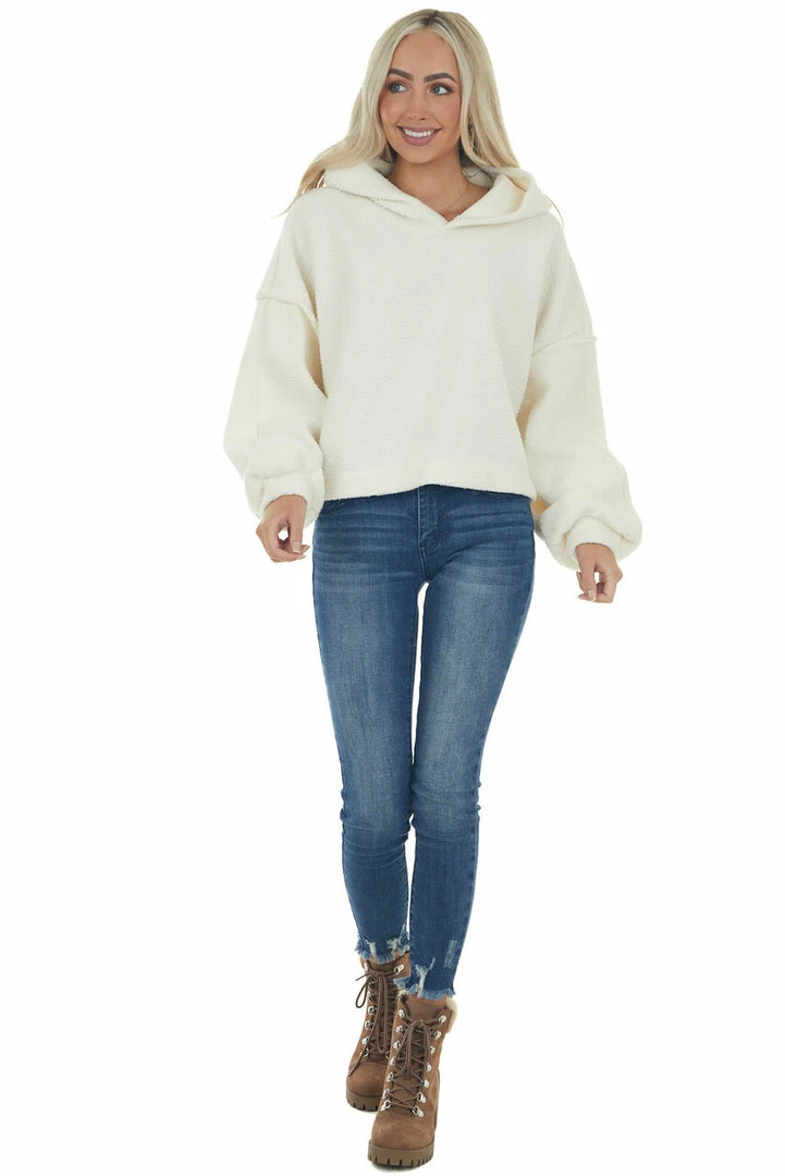 - Ivory Long Sleeve Hooded Sherpa Jacket