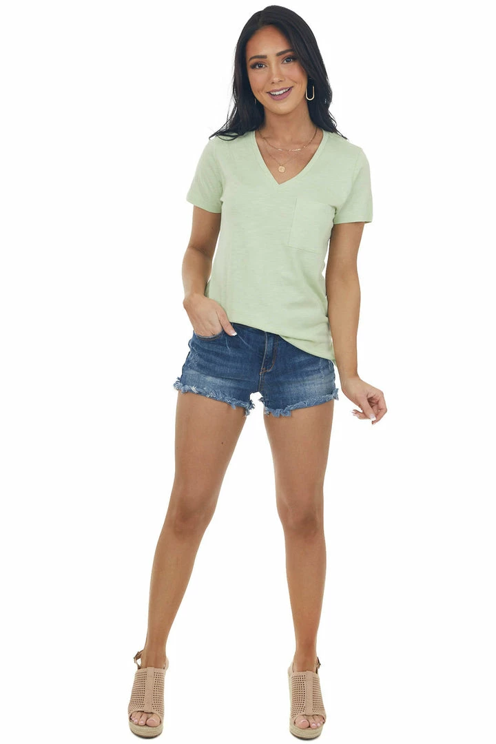 - Pistachio Melange Chest Pocket Short Sleeve Tee