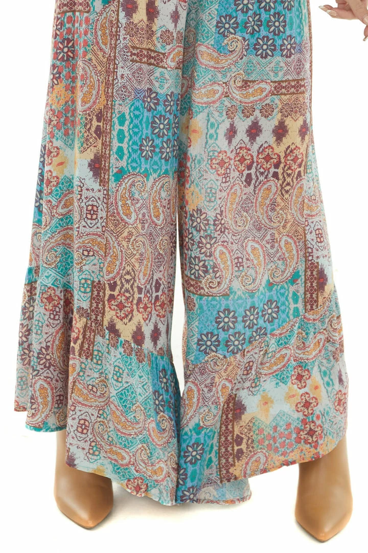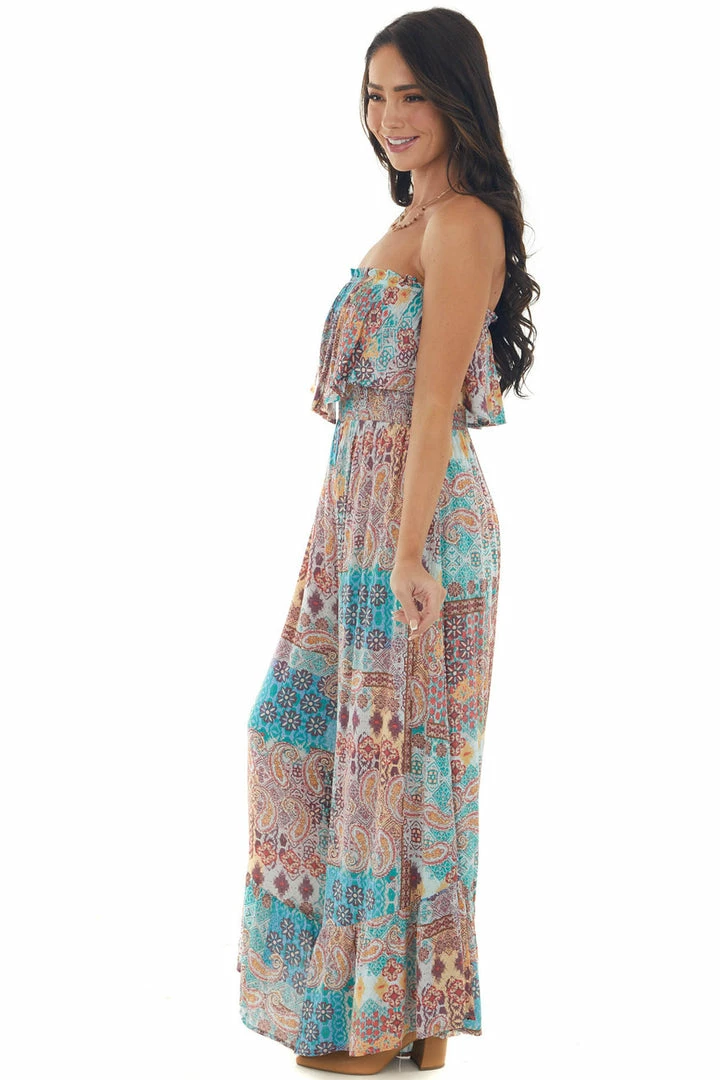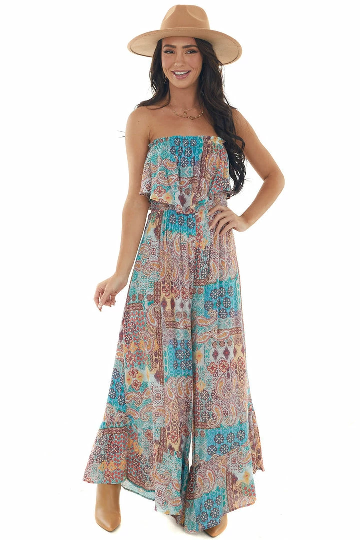 - Pastel Blue Abstract Print Strapless Jumpsuit