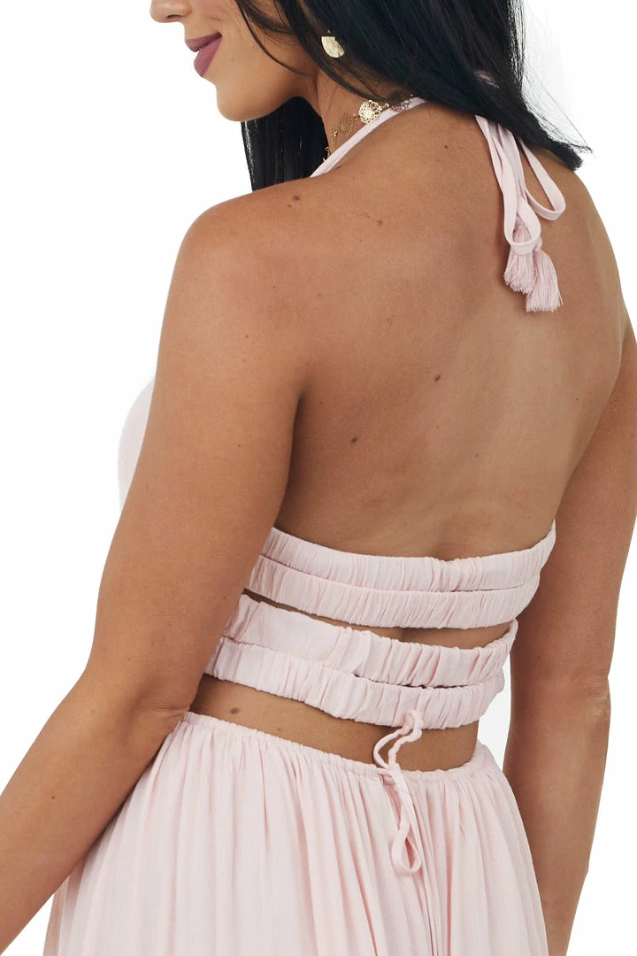- Blush Smocked Strappy Back Halter Maxi Dress