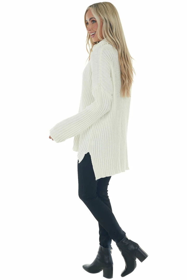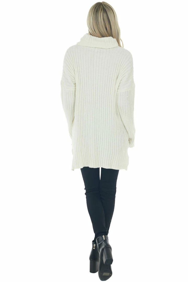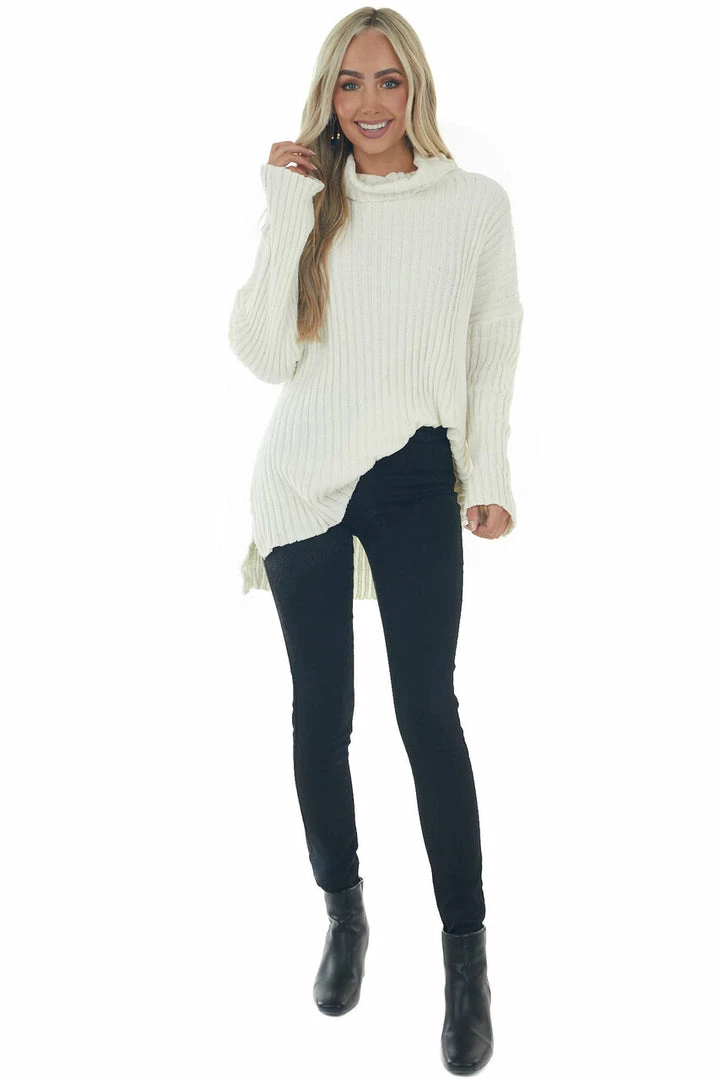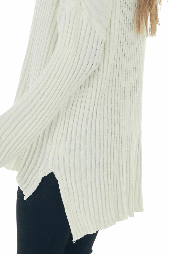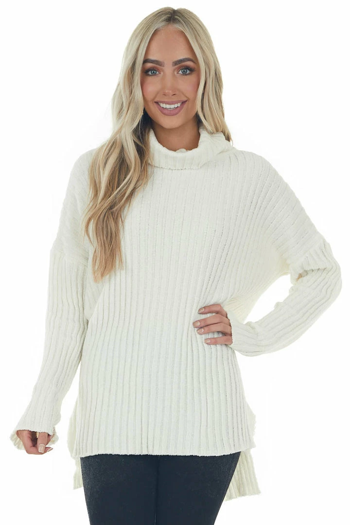 - Cream Chenille Ribbed Cowl Neck Sweater