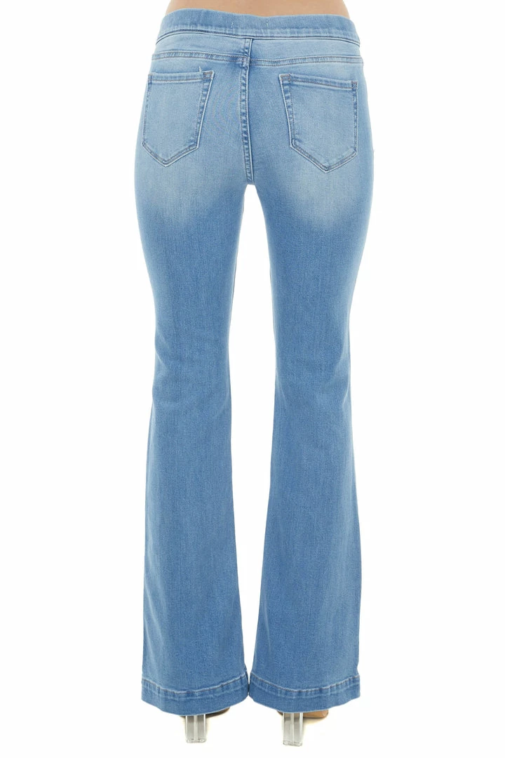 - Light Wash Mid Rise Pull On Flare Leg Jeggings