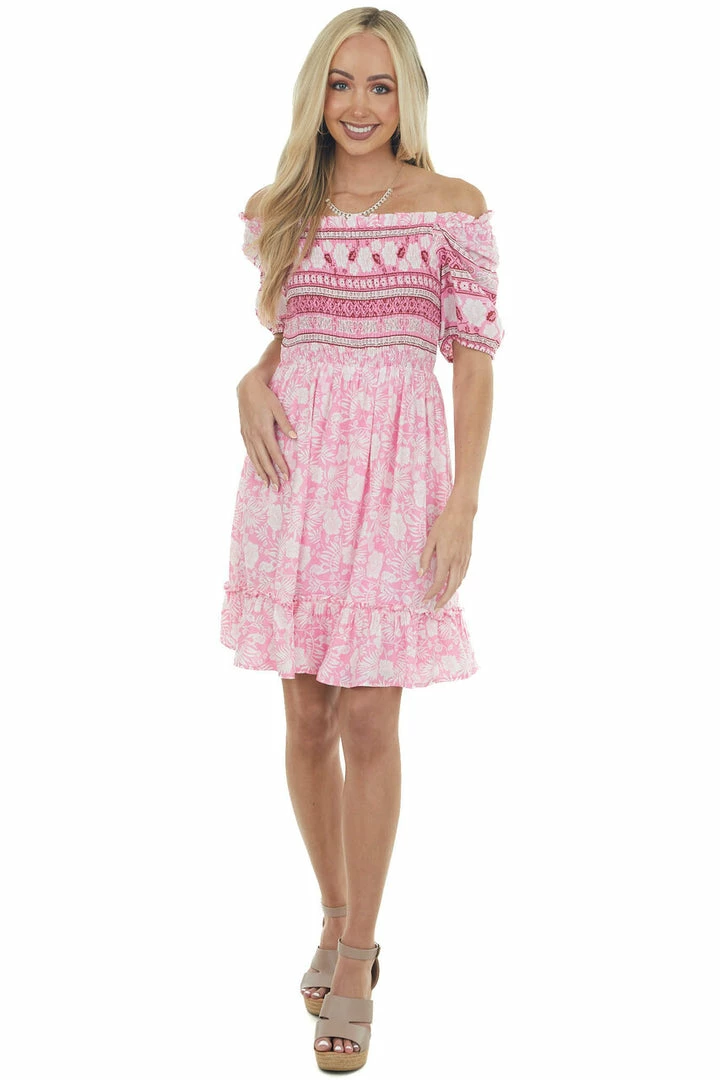 - Tropical print in shades of Bubblegum, Ivory and Maroon