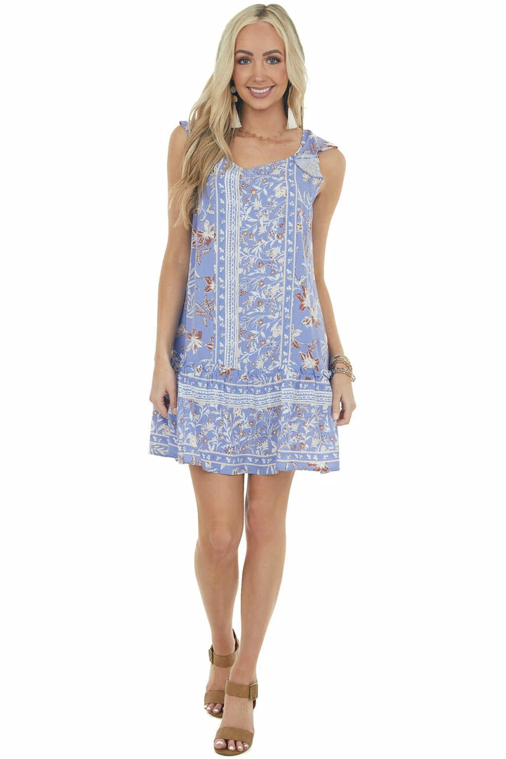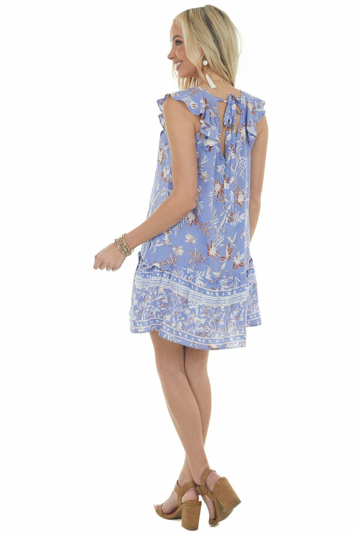 - Bright Lavender Floral Cap Sleeve Short Dress