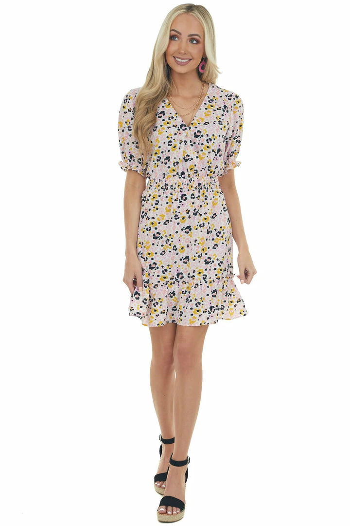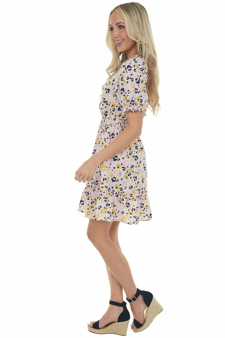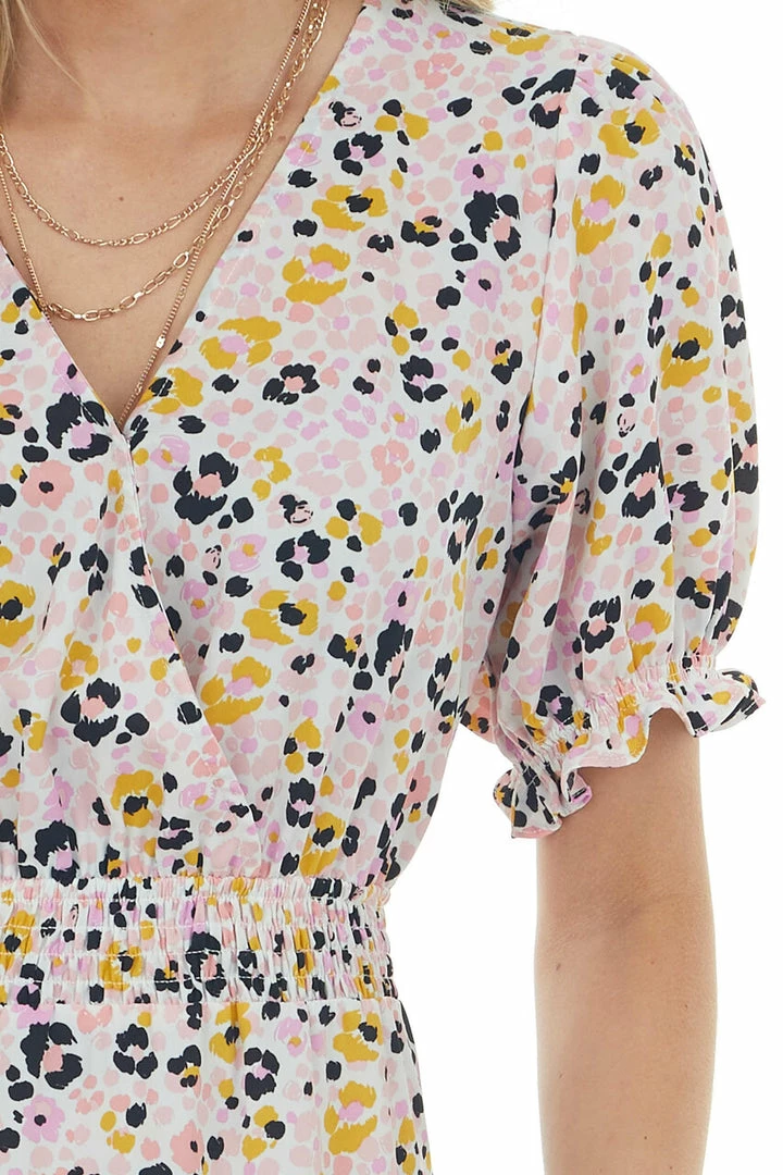 - Ivory Printed Surplice Woven Short Dress