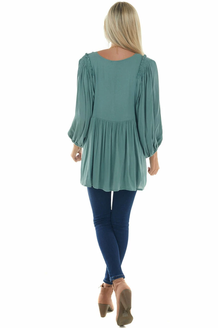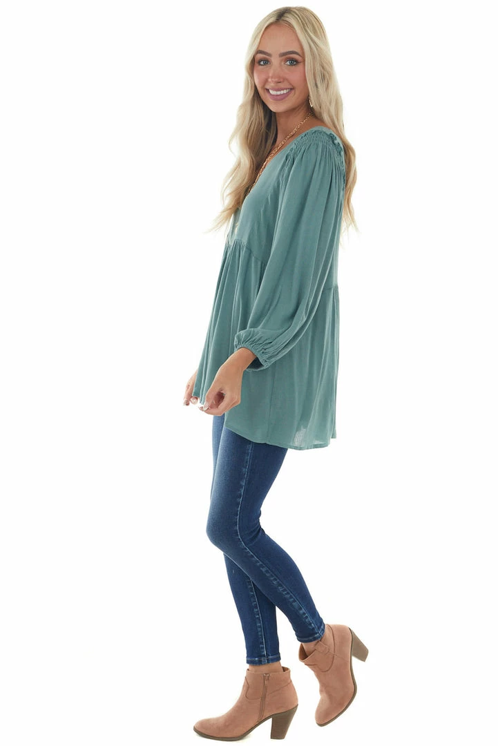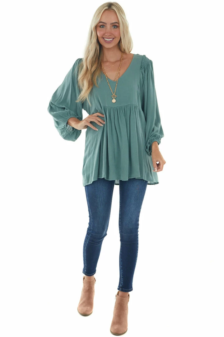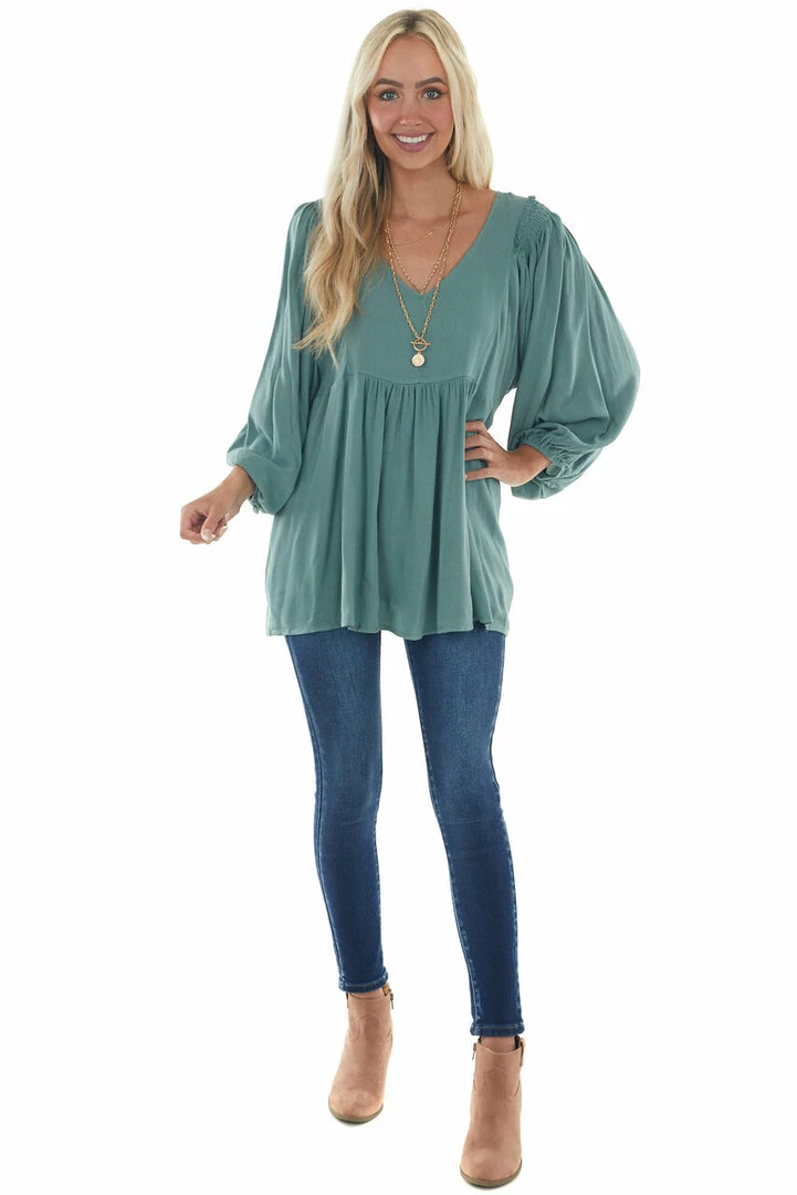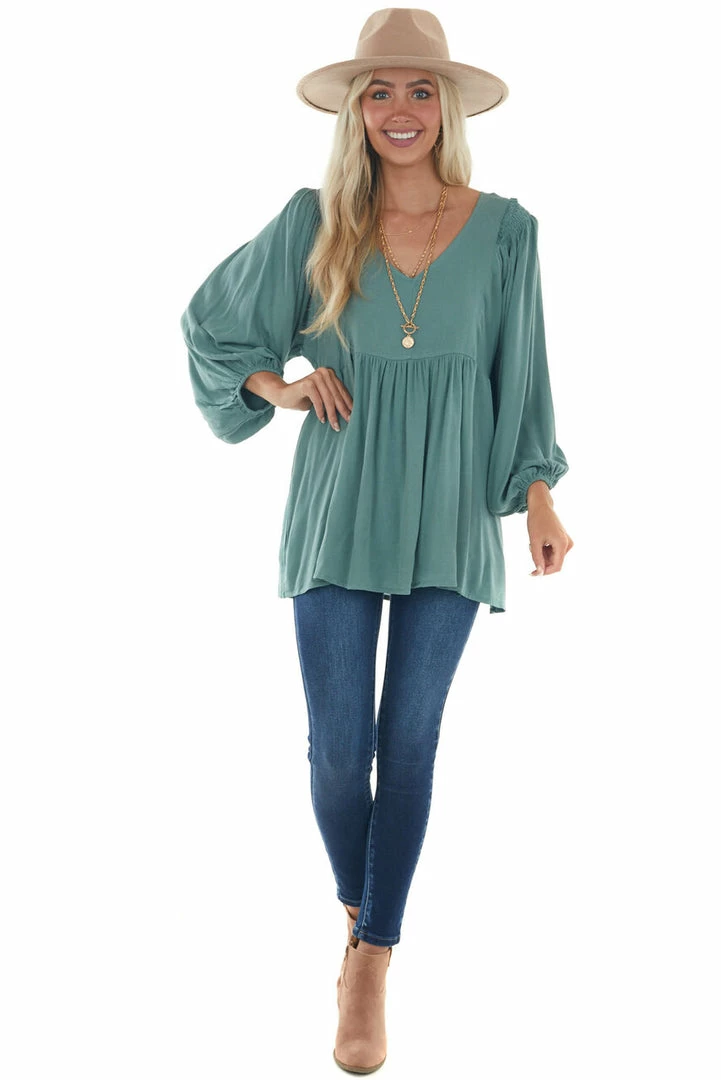 - Juniper Bubble Sleeve Babydoll Woven Top