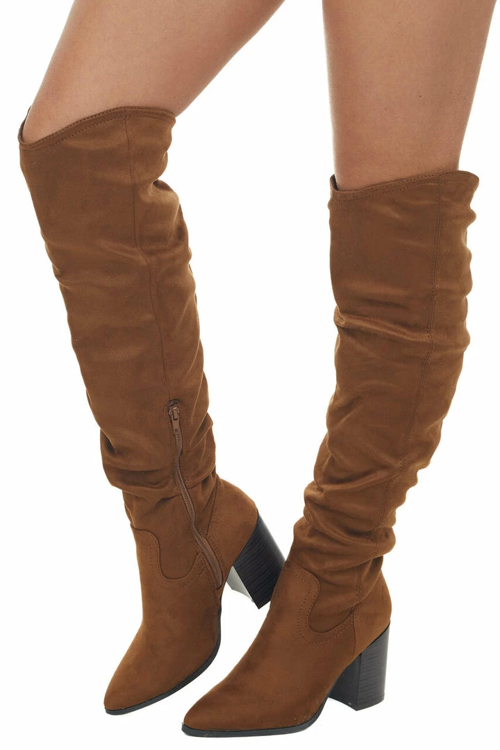 - Sepia Faux Suede Pointed Toe Slouchy Boots