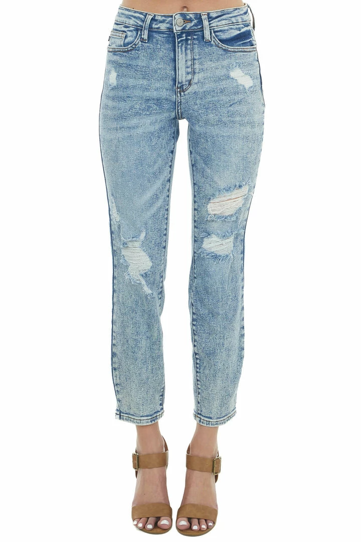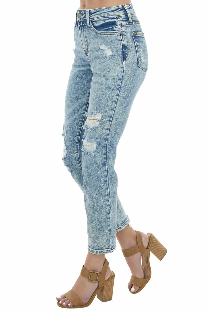 - Medium Acid Wash High Rise Boyfriend Jeans
