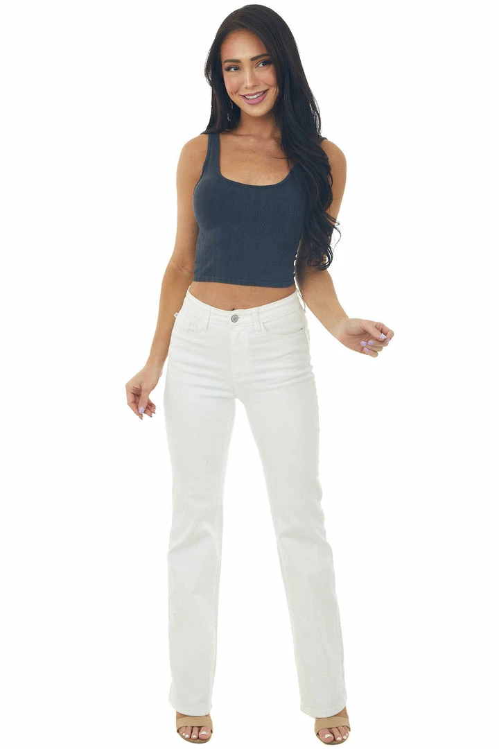 - White High Rise Flare Leg Boot Cut Denim Jeans