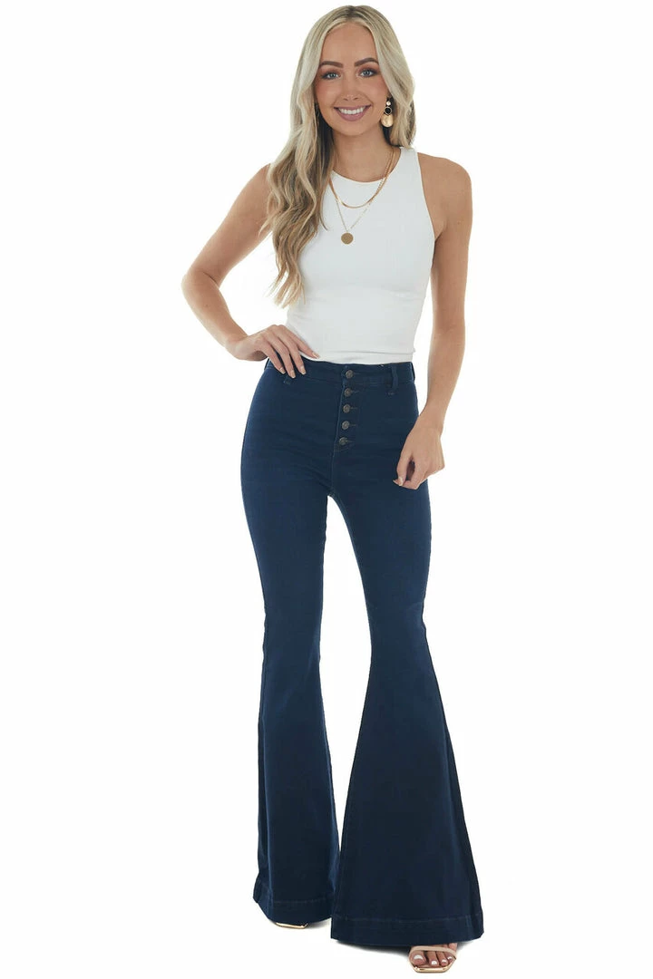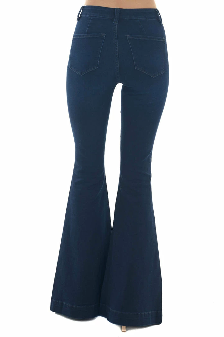 - Dark Wash High Rise Super Flare Stretchy Jeans