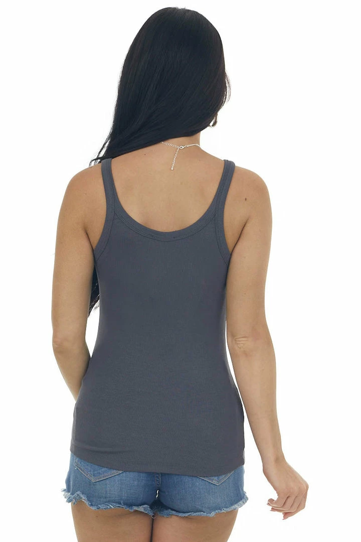 - Charcoal Ribbed Knit Scoop Neck Tank Top