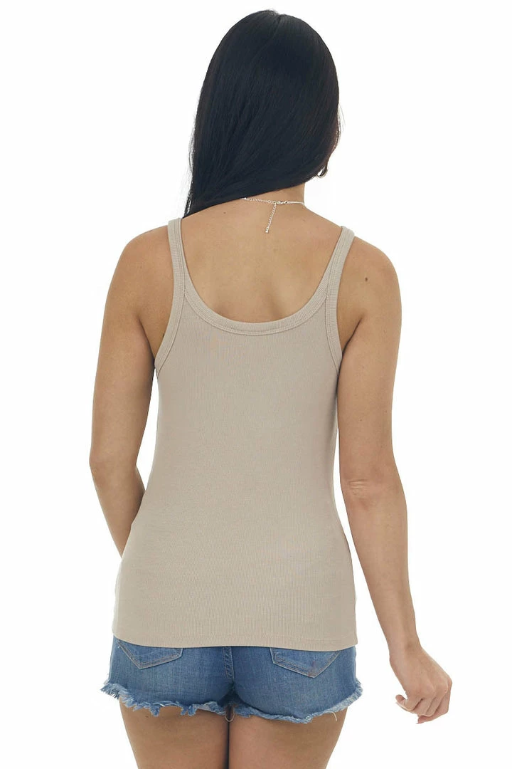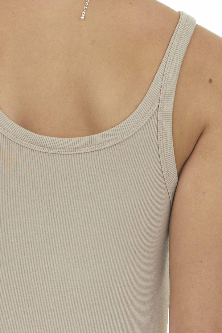 - Latte Ribbed Knit Scoop Neck Tank Top