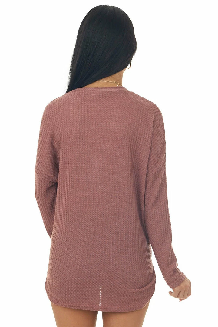 - Berry Button Up Long Sleeve Waffle Knit Top