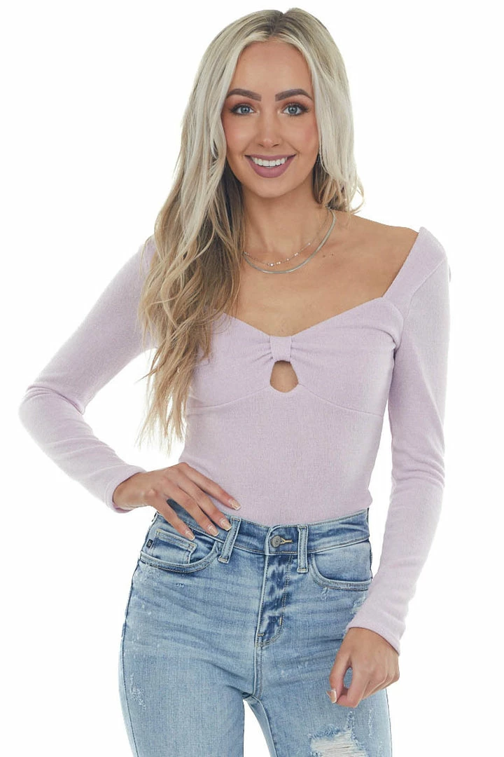 - Light Orchid Long Sleeve Bow Front Bodysuit