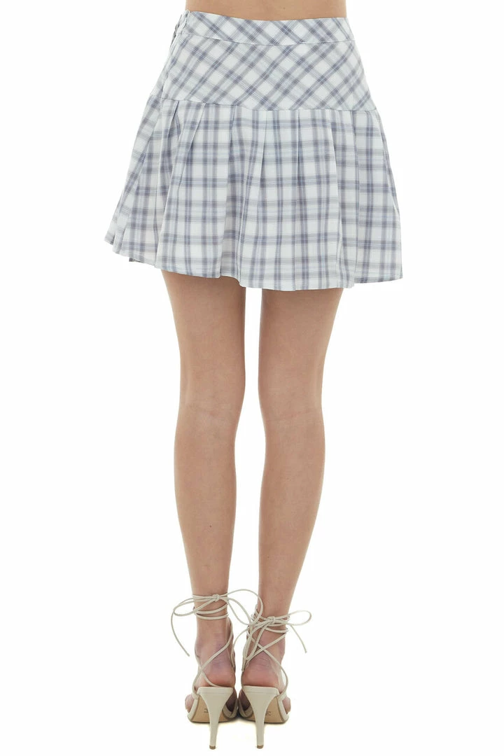 - Steel Plaid A Line Wrap Mini Skirt with Button