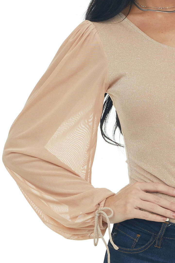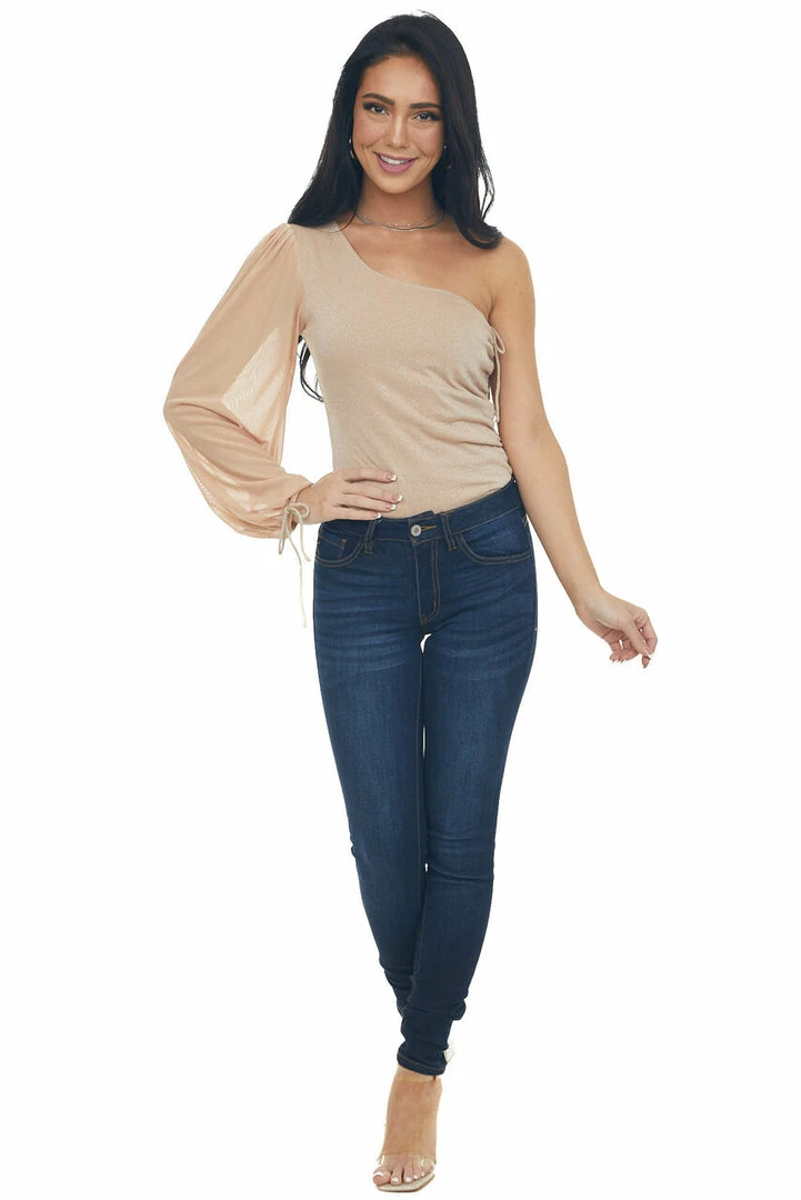 - Peach Shimmery One Shoulder Ruched Bodysuit