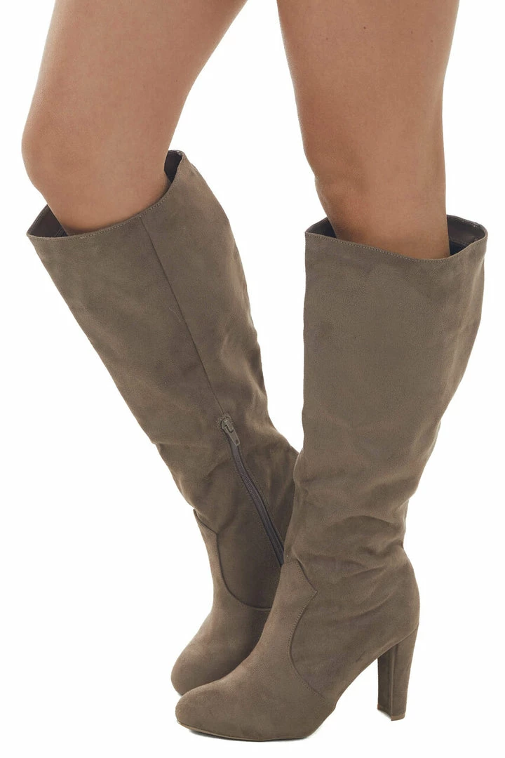 - Peanut Faux Suede Tall Calf High Heeled Boots