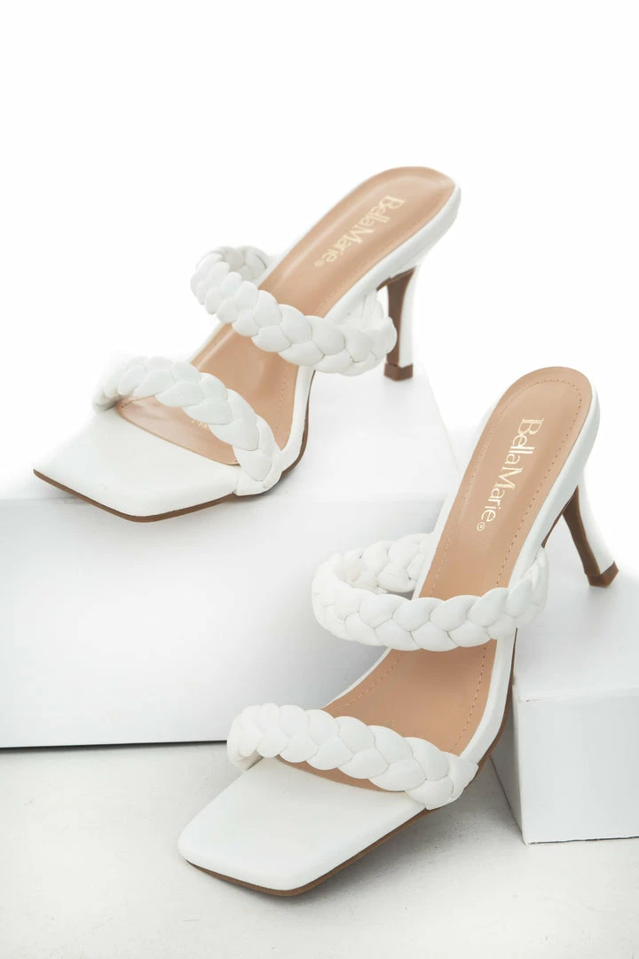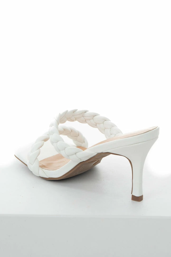 - White Braided Strap Square Toe Stiletto Heels