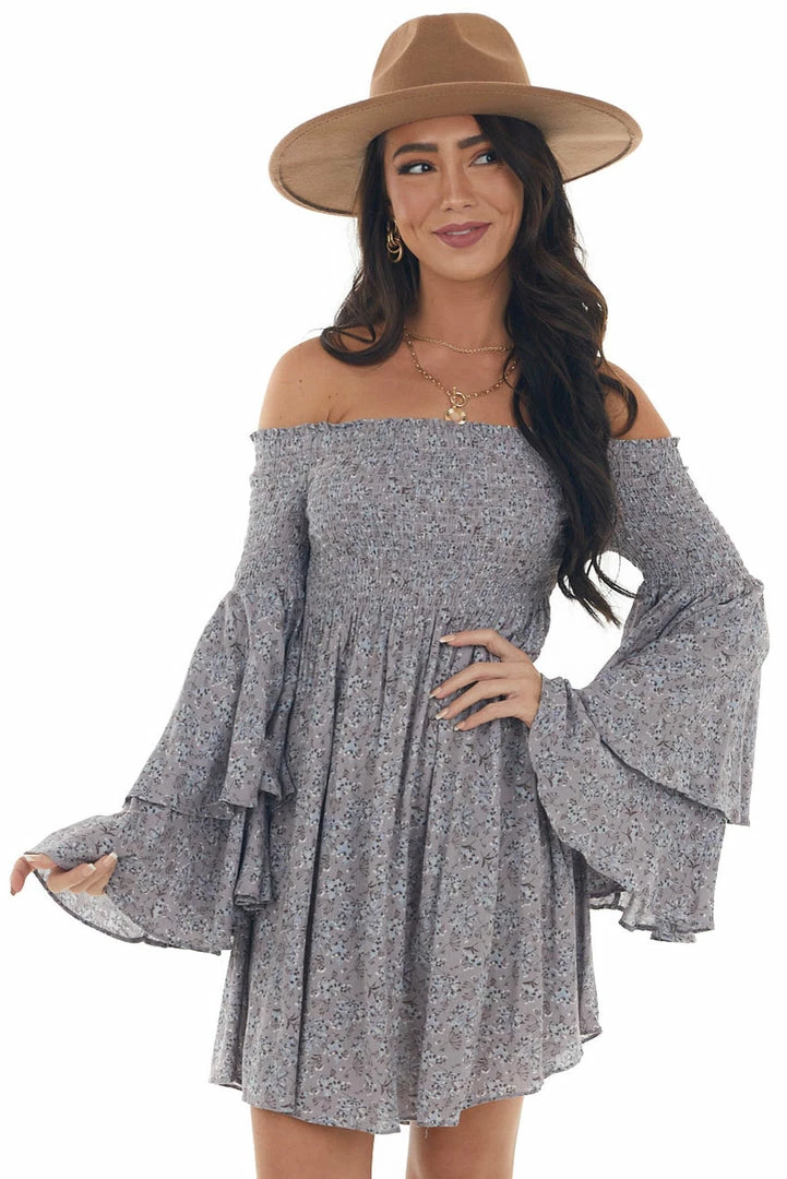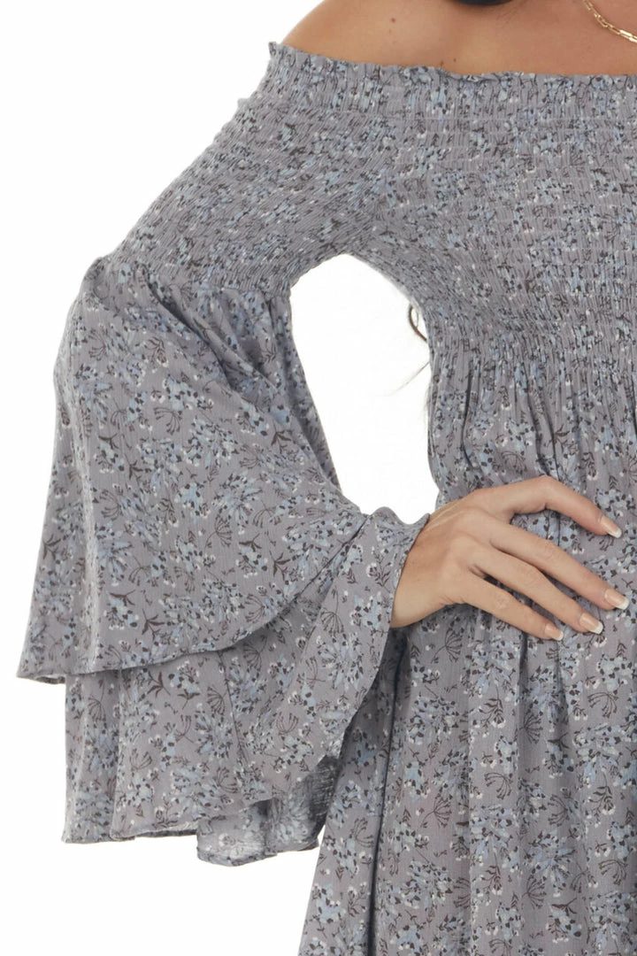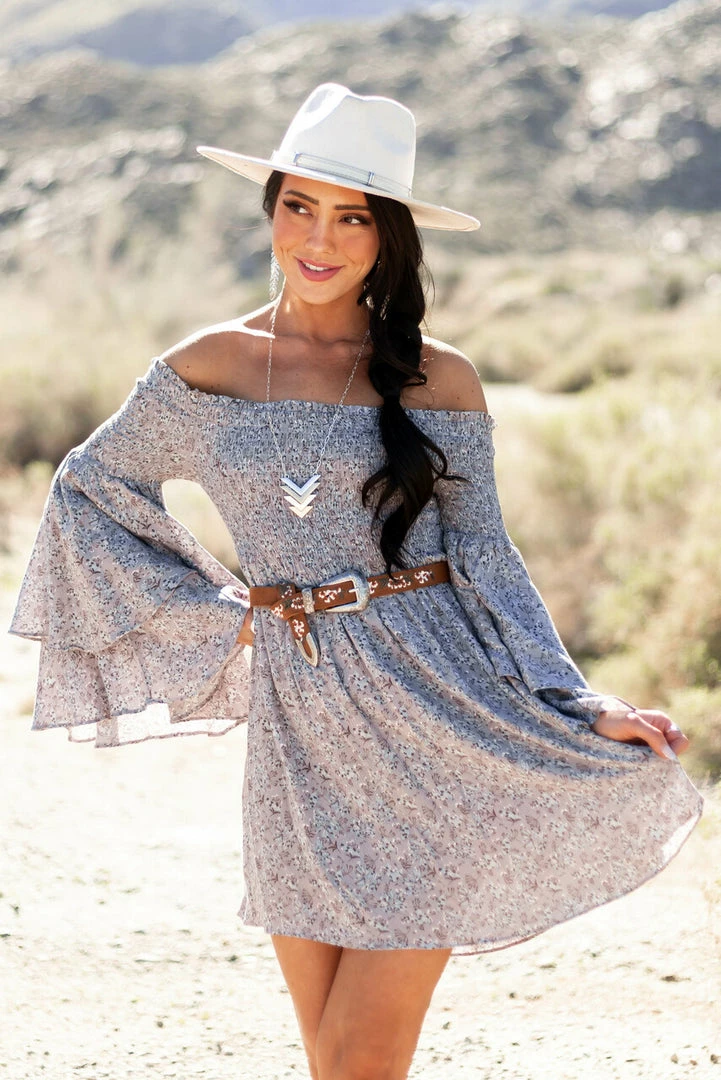 - Floral print in shades of Powder Blue, Cocoa, Ivory, and Arctic Blue