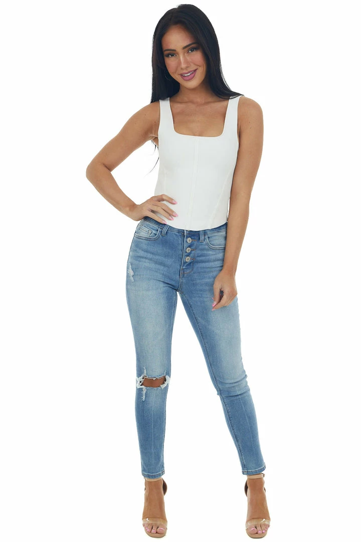 - Ivory Square Neck Thick Sleeveless Crop Top