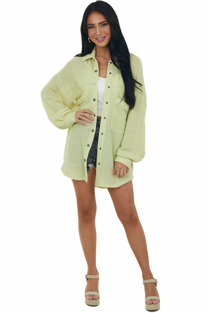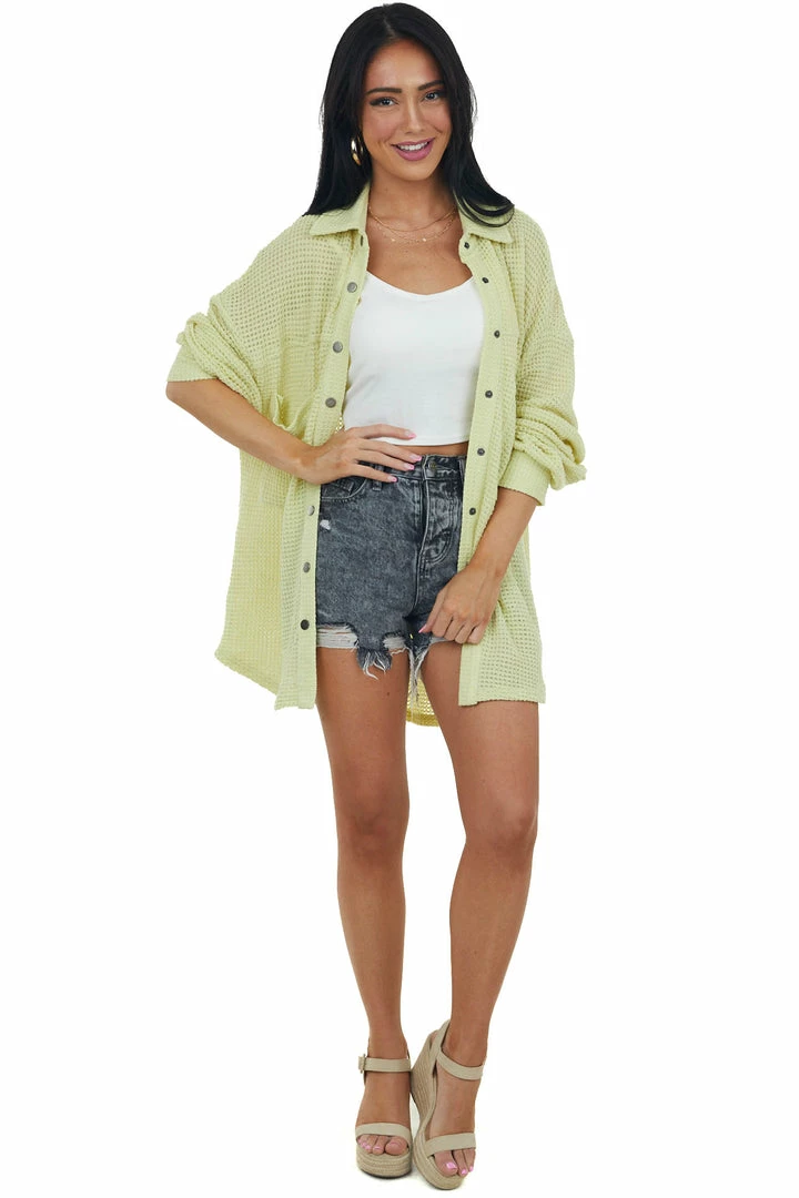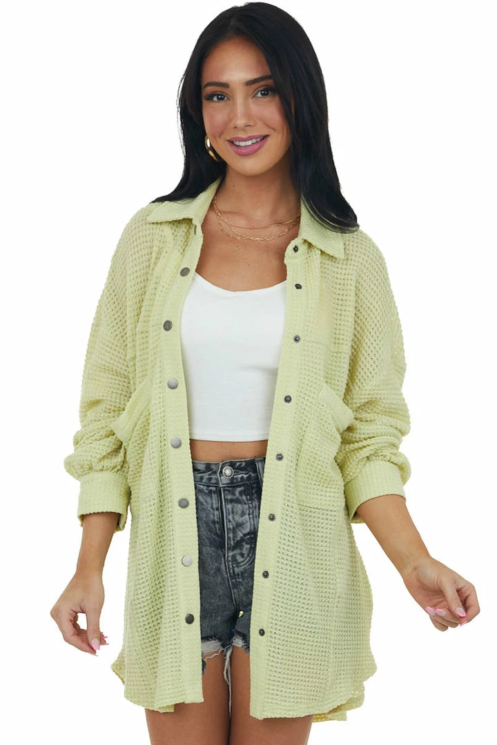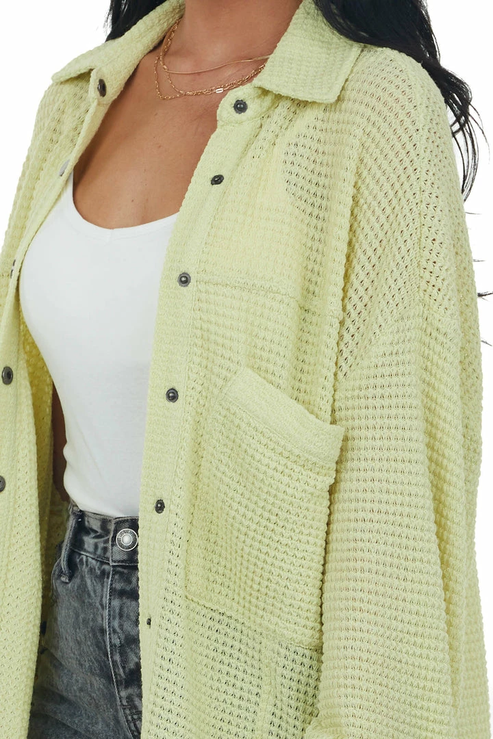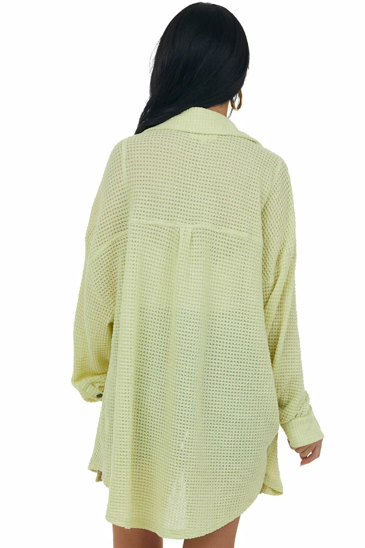 - Faded Lime Thermal Knit Oversized Button Up Top