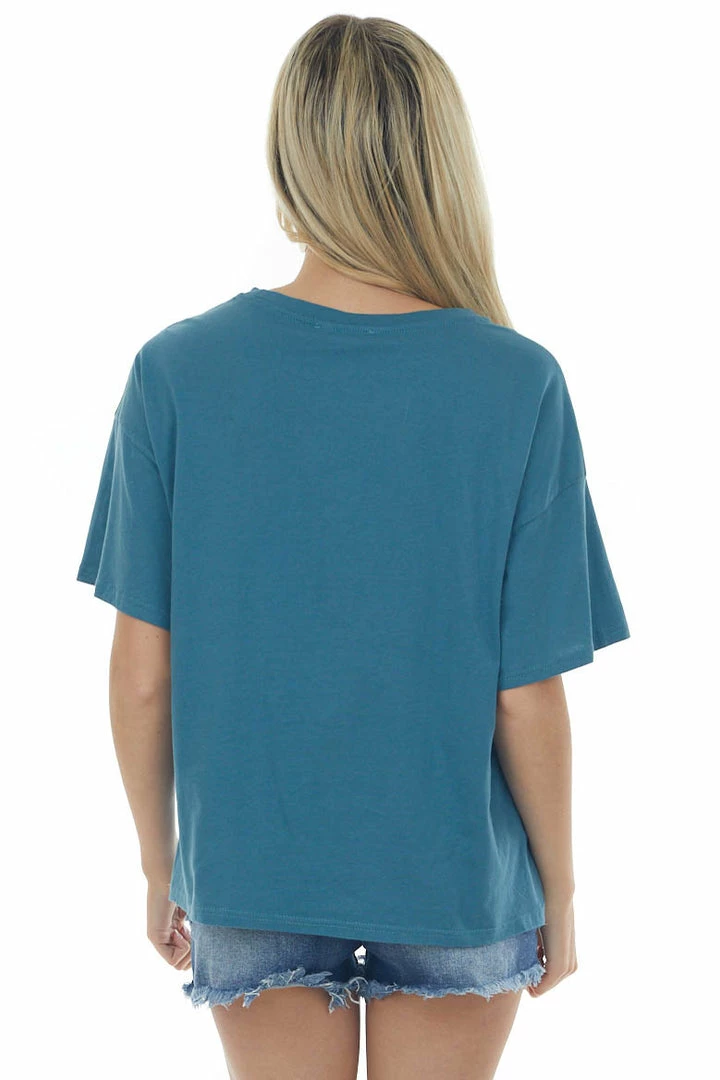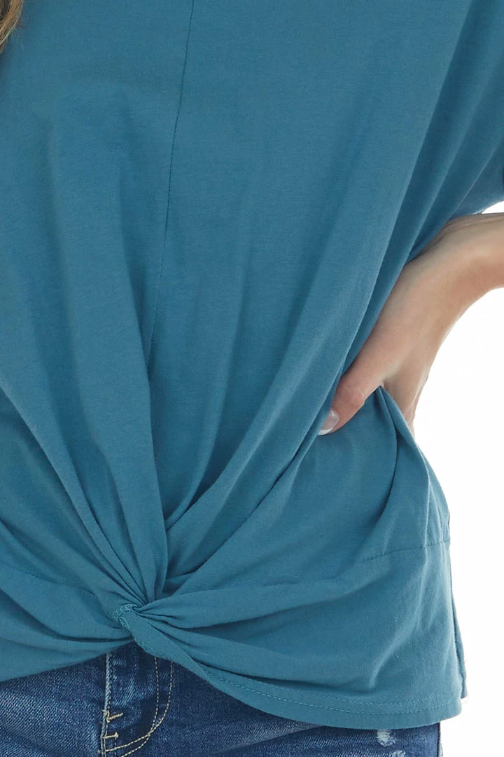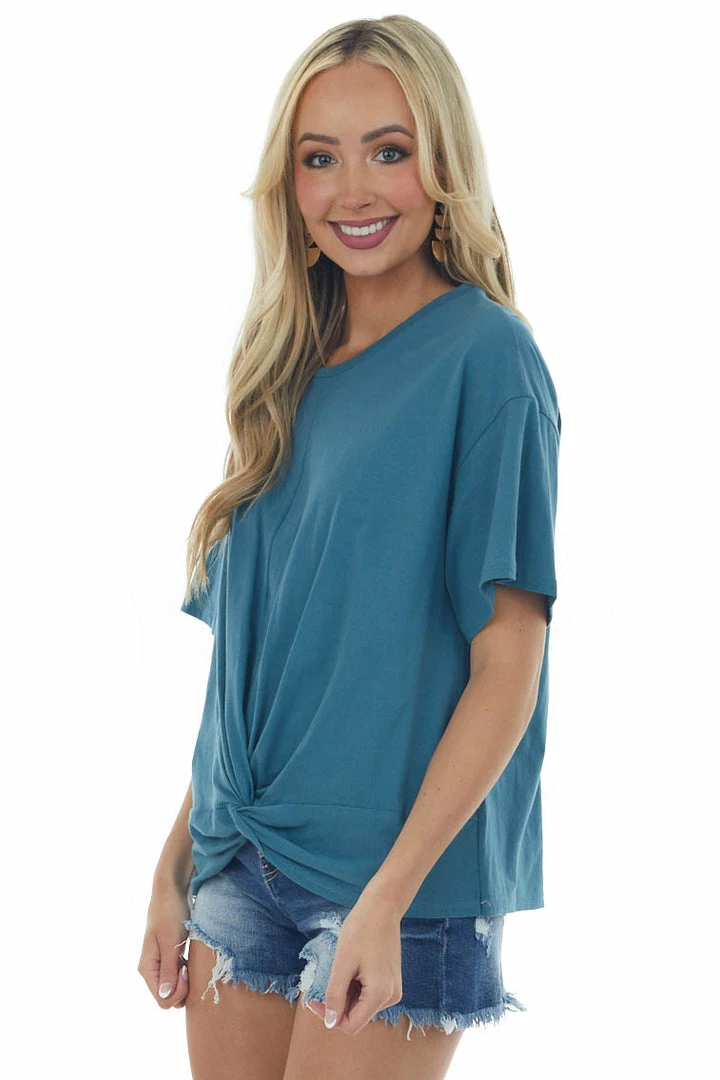 - Sea Blue Front Knot Drop Shoulder Knit Tee