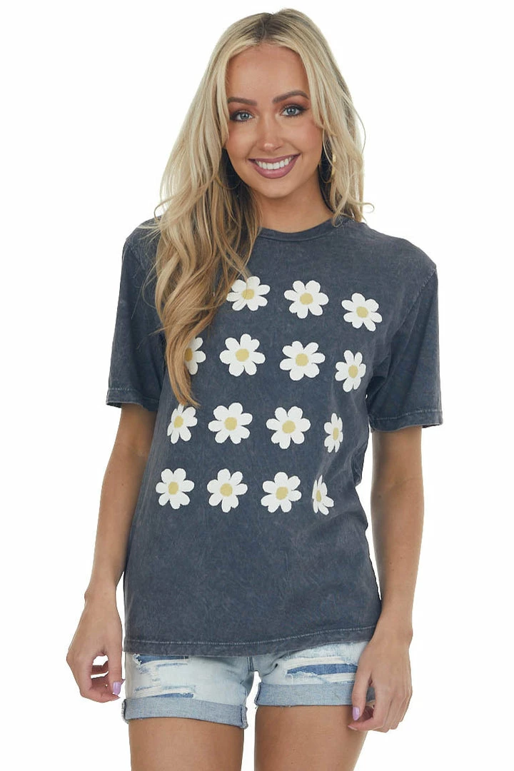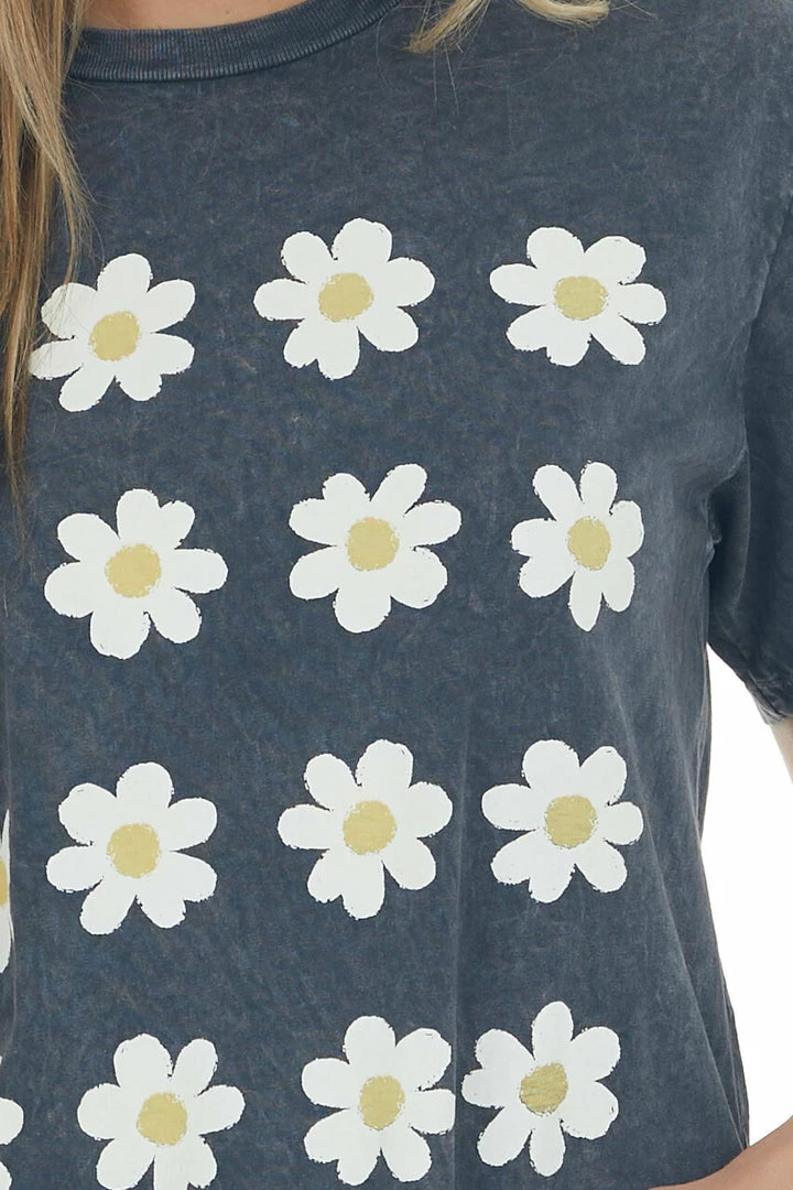 - Daisy print graphic in shades of Off White and Straw Yellow